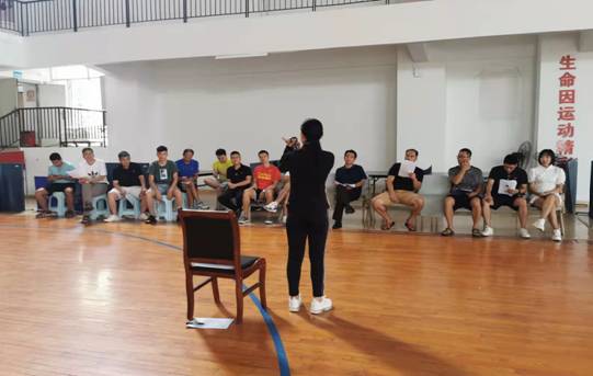 9月14日上午,体育教研部在文体中心对新任主讲教师彭松英进行试讲评议,教研活动由休闲与健康教研室主任关永康主持,体育教研部主任周勇及部门全体教职工参加此次活动。