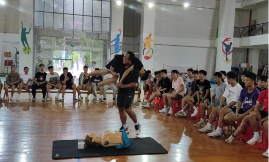 9月23日下午,体育与健康学院在文体中心开展专题讲座,本次专题活动邀请到广西师范大学远航副教授来我院作防溺水安全知识和心肺复苏专题讲座,活动由院长助理关永康主持,学院全体教职工、休闲体育专业学生参加此次讲座。