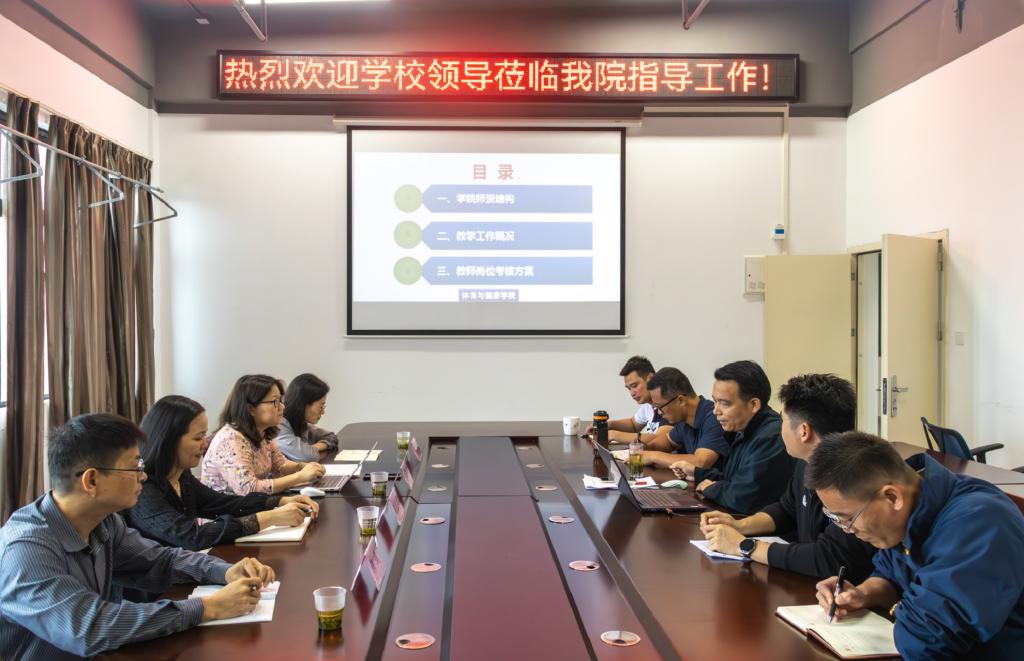 5月10日上午,学校副校长李桂华、陈玲萍、校长助理韩剑,人事处处长周文彬等一行来体育与健康学院调研教师岗位考核工作,会议由体育与健康学院院长周勇主持,体育与健康学院各教研室主任及相关教师代表在行健楼会议室参加了此次会议。