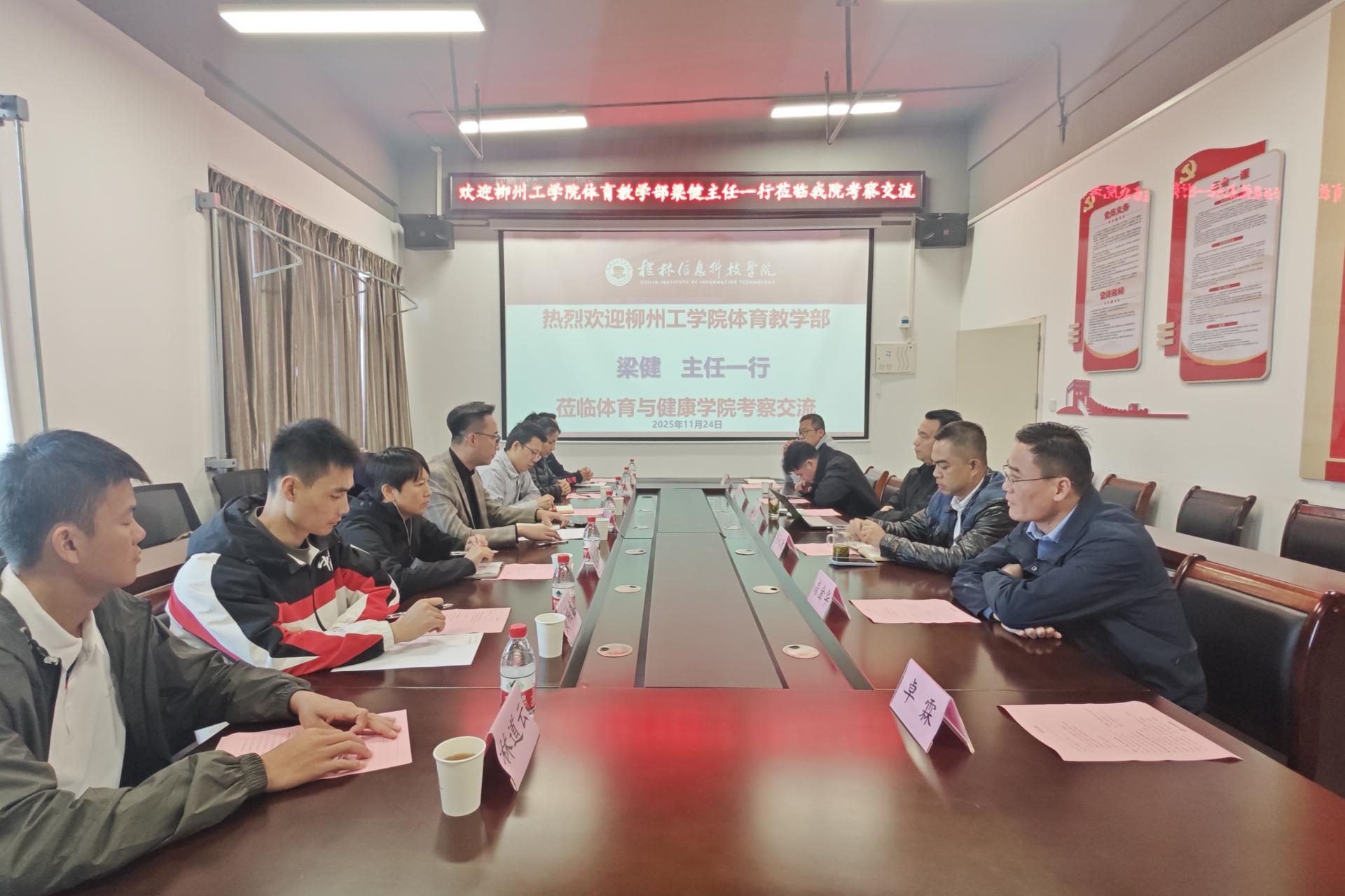 11月24日下午,柳州工学院体育教学部组织教学骨干团队来beat365体育与健康学院考察交流,双方在行健楼205会议室召开交流座谈会。体育与健康学院院长周勇、学院领导班子以及各教研室主任参加此次会议。