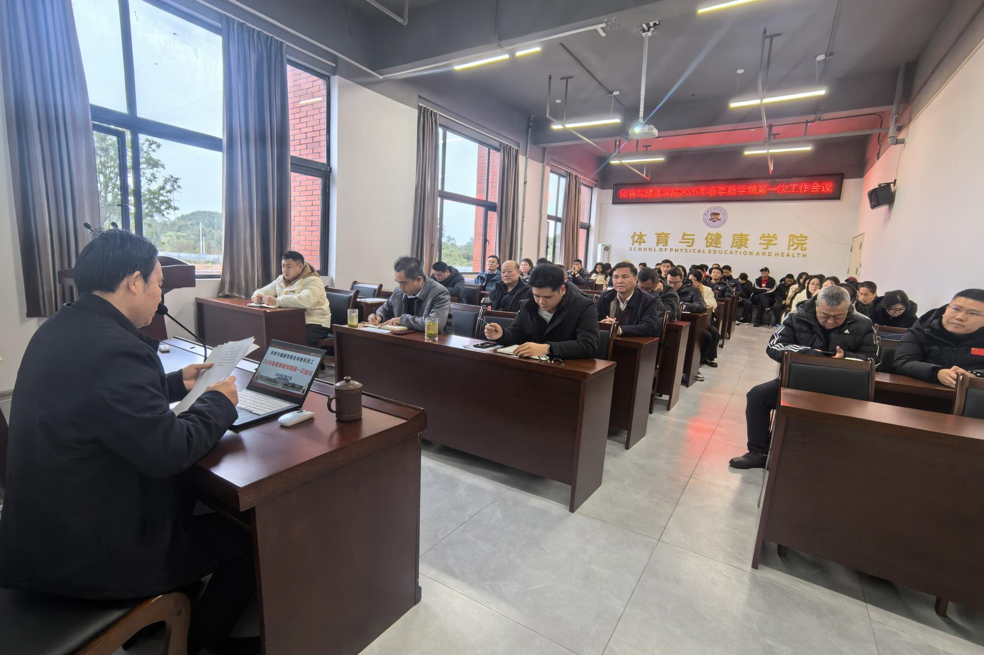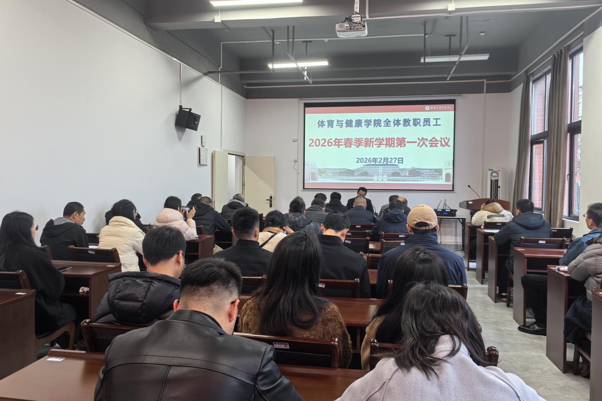 2月27日上午,学院2026年春季新学期第一次工作会议在行健楼108会议室召开。会议全面总结上学期相关工作,统筹部署新学期教学、管理、学生工作等各项任务,为新学期工作开展明确方向、提出要求。