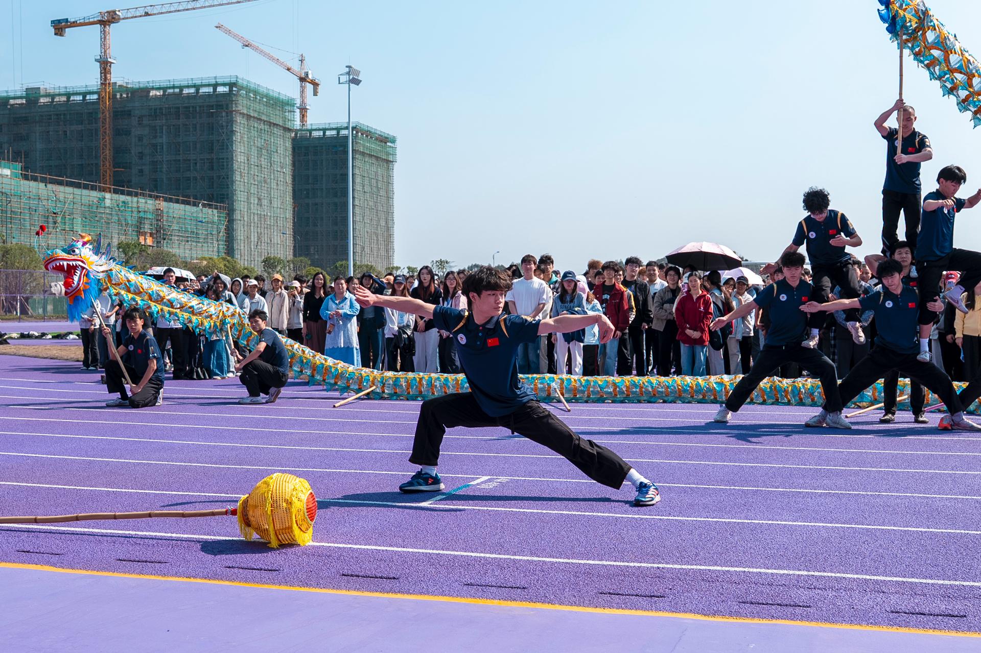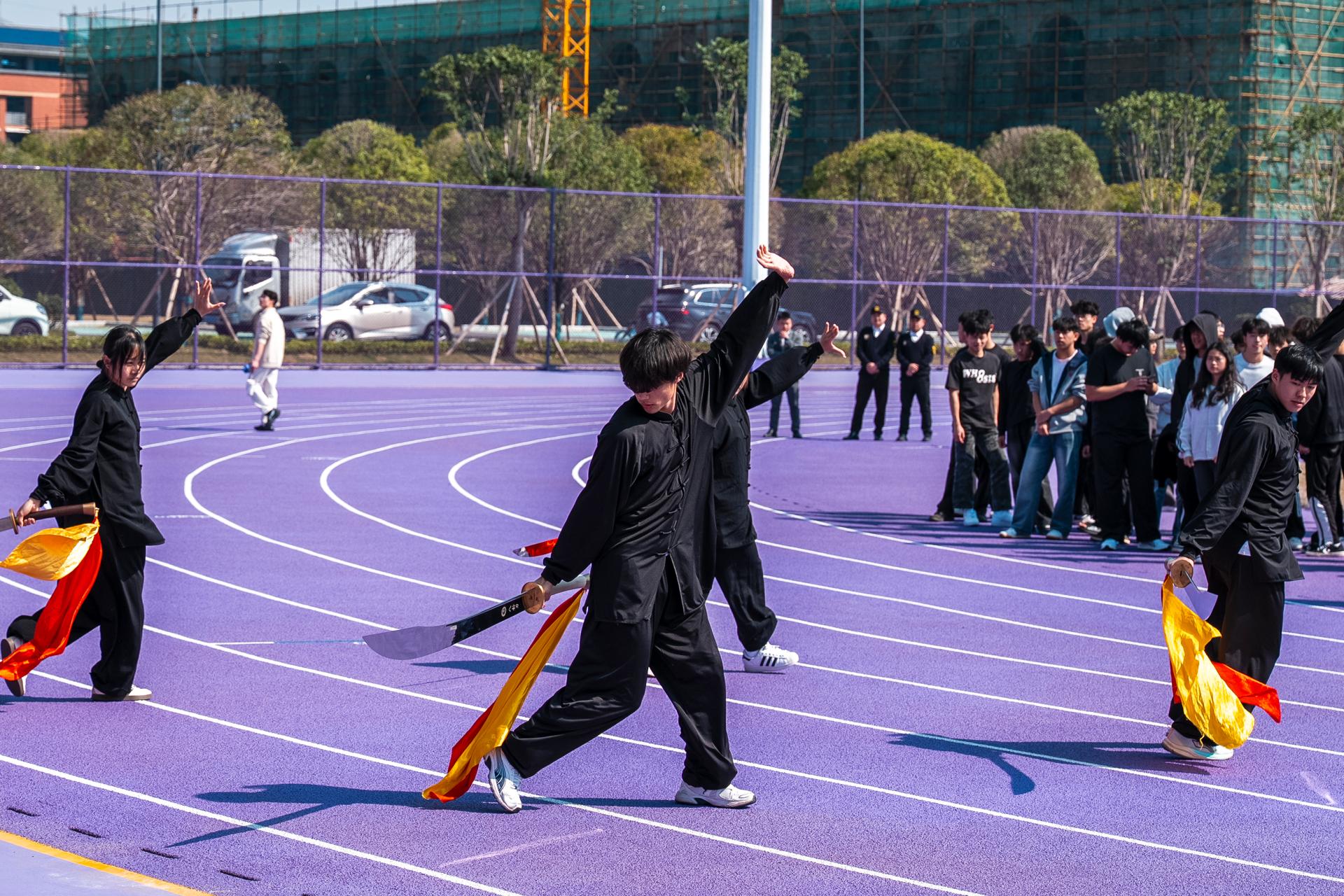 仪式暖场环节,体育与健康学院师生带来舞龙、舞狮和八卦大刀表演。启用仪式中,甘勇书记宣布:beat365官方网站二期校区体育场正式启用!并向参与体育场建设、筹备工作的全体人员致以诚挚谢意。同时勉励全体师生以体育场启用为契机,积极参与体育锻炼,发扬体育精神,在运动中强健体魄、砥砺品格,以饱满的精神状态投入到学习、工作与生活中。随后,党委副书记李飞为本次启用仪式的足球友谊赛进行开球。