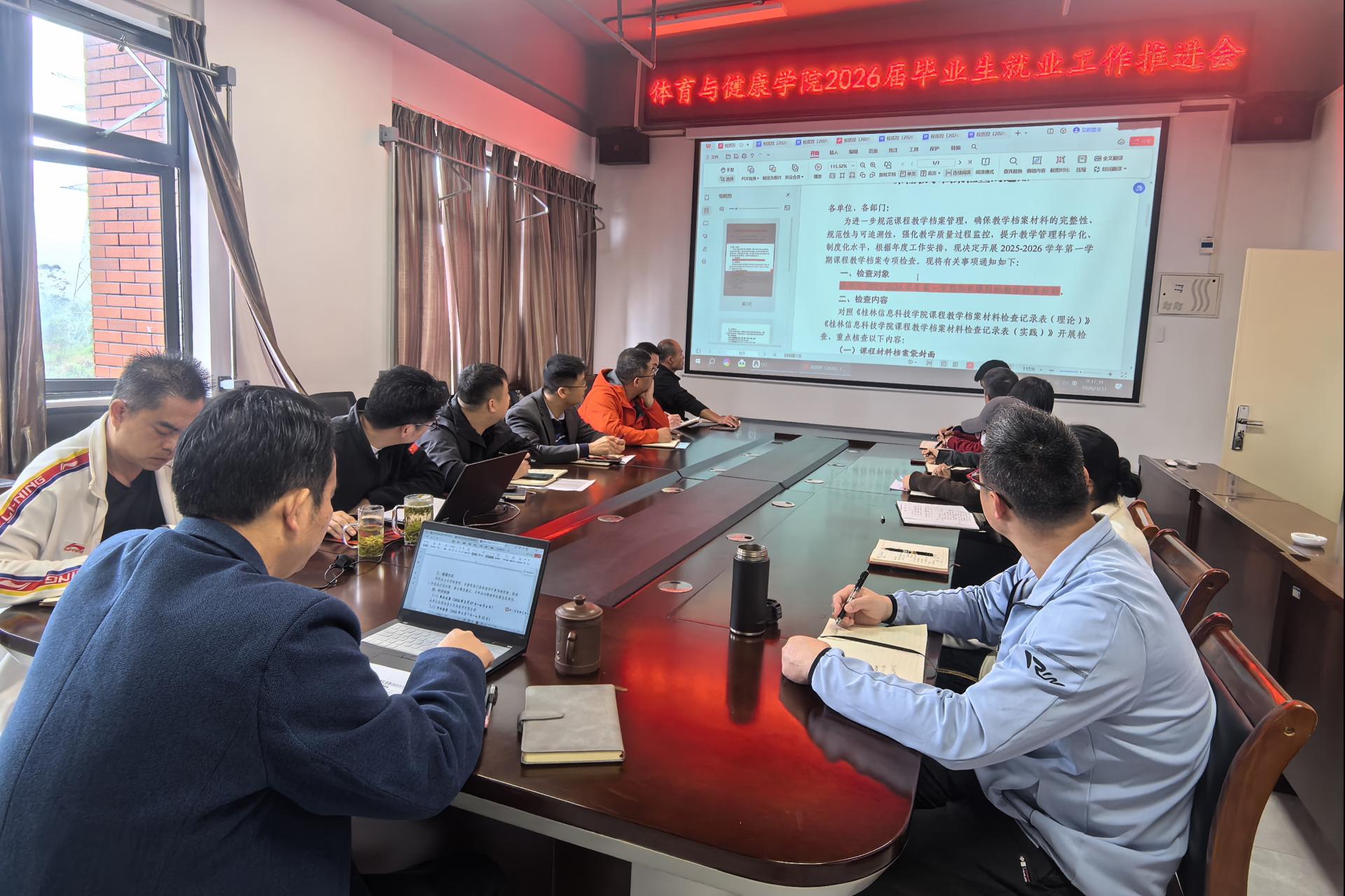 3月31日上午,体育与健康学院在行健楼205会议室召开2026届毕业生就业工作专题推进会,全面部署毕业生就业推进工作。学院院长、书记牵头、共同主持,将就业工作作为 “一把手工程” 高位推进。会议聚焦我院就业工作痛点、难点,明确工作方向,细化攻坚举措,凝聚全员合力护航毕业生就业之路。学院领导班子、毕业班全体辅导员、各教研室主任参会。