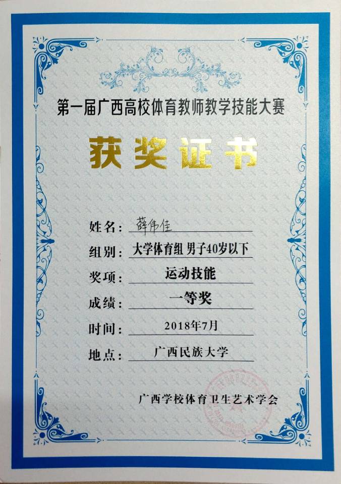 广西高校教学技能大赛-运动技能一等奖