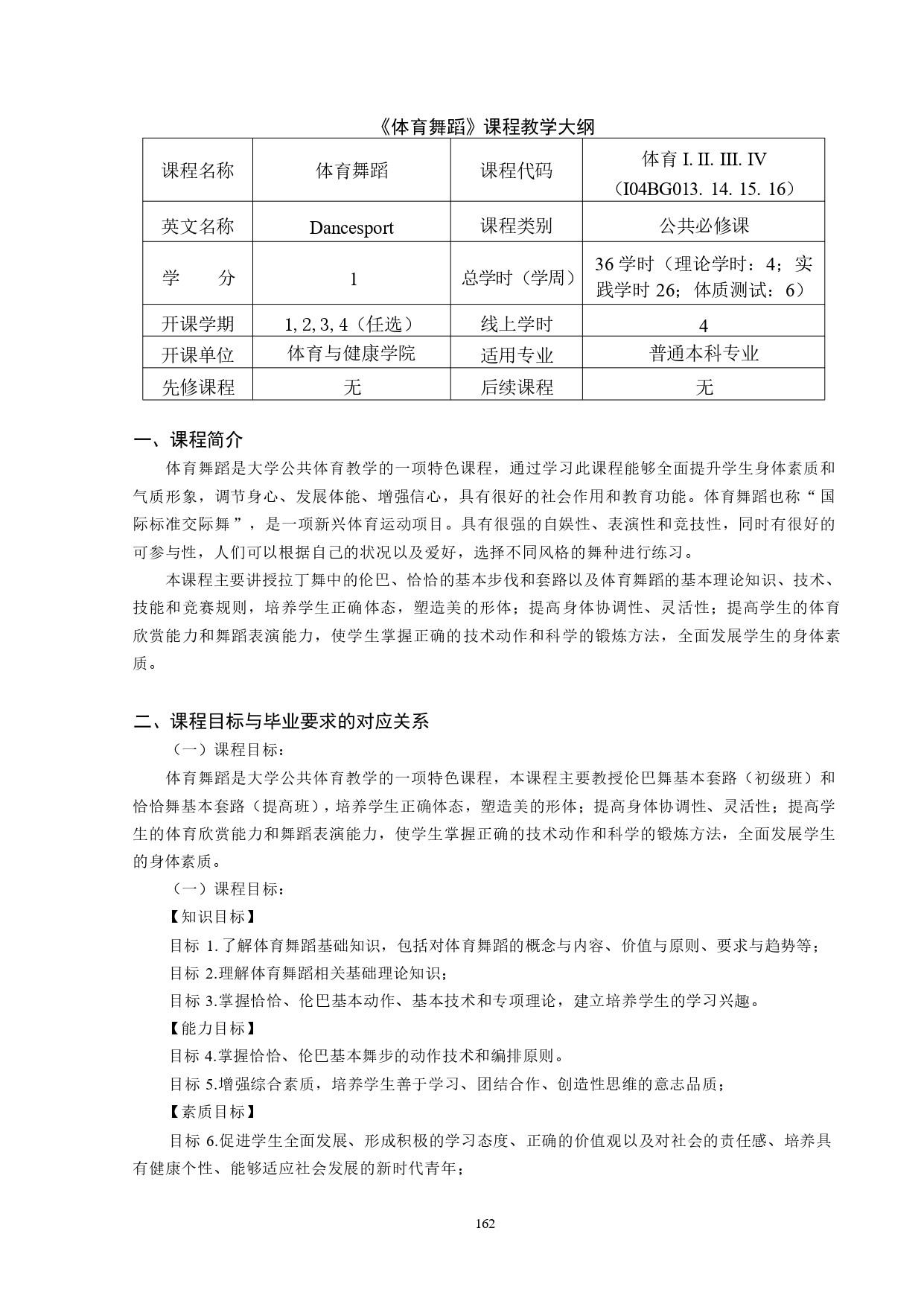 体育舞蹈教学大纲