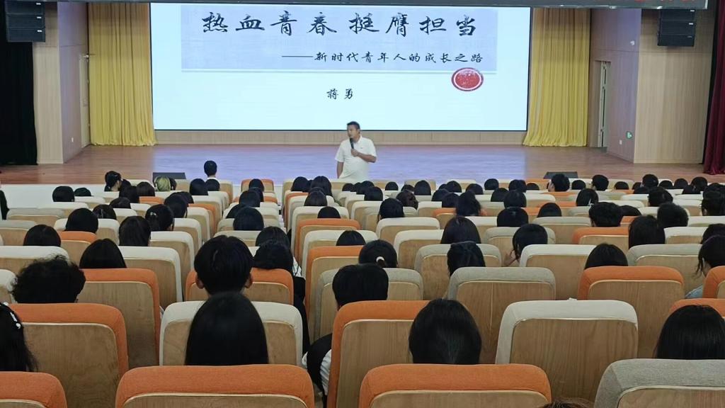 会上,蒋勇老师以“热血青春,挺膺担当——新时代青年人的成长之路”为题,勉励新同学要学会规划自己的人生,立志做有理想、敢担当、能吃苦、肯奋斗的新时代好青年,为强国建设、民族复兴挺膺担当,并引导新生秉持“奉献、友爱、互助、进步”的志愿服务精神,激励年轻人在追求梦想的道路上不断努力。