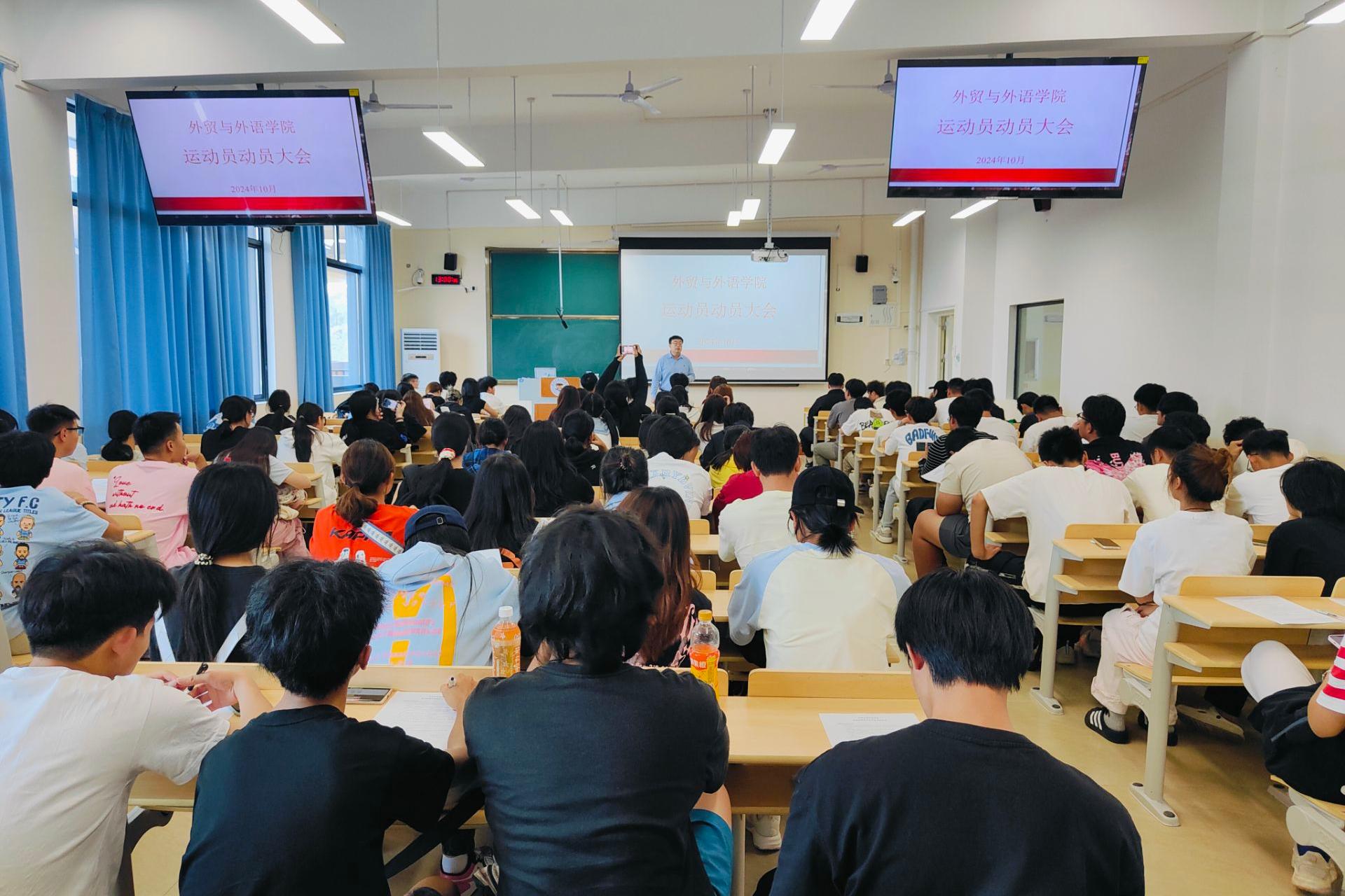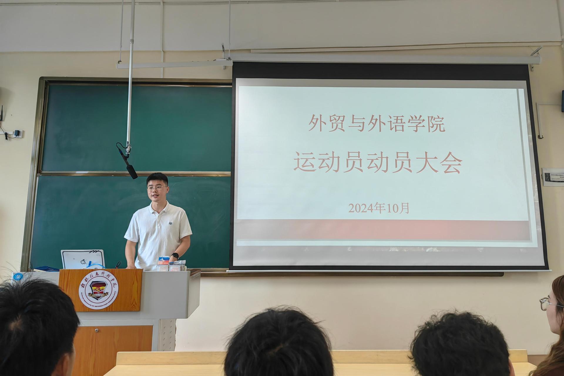紧接着,刘冲老师详细阐述了运动会的筹备情况,并表示学院团委将全力支持运动员们的备赛工作。希望运动员们能够珍惜这次机会,充分展示外贸与外语学院的风采和实力,并鼓励运动员们要在比赛中保持积极向上的心态,享受比赛过程,勇敢面对比赛结果。