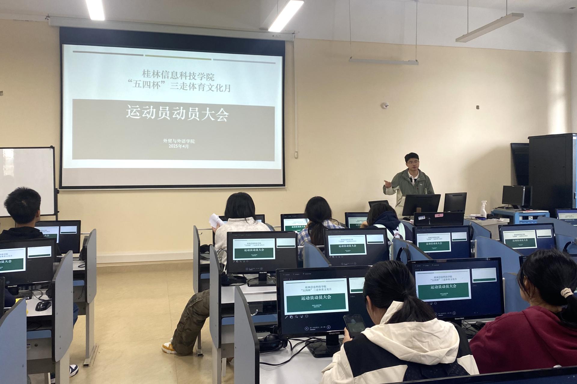 为迎接beat365“五四杯”三走体育文化月的到来,4月7日中午,外贸与外语学院在F101召开了运动员动员大会。此次大会由学院团委负责人刘冲主持,学院学工办主任杨锦超出席,为即将参赛的运动员们加油鼓劲。