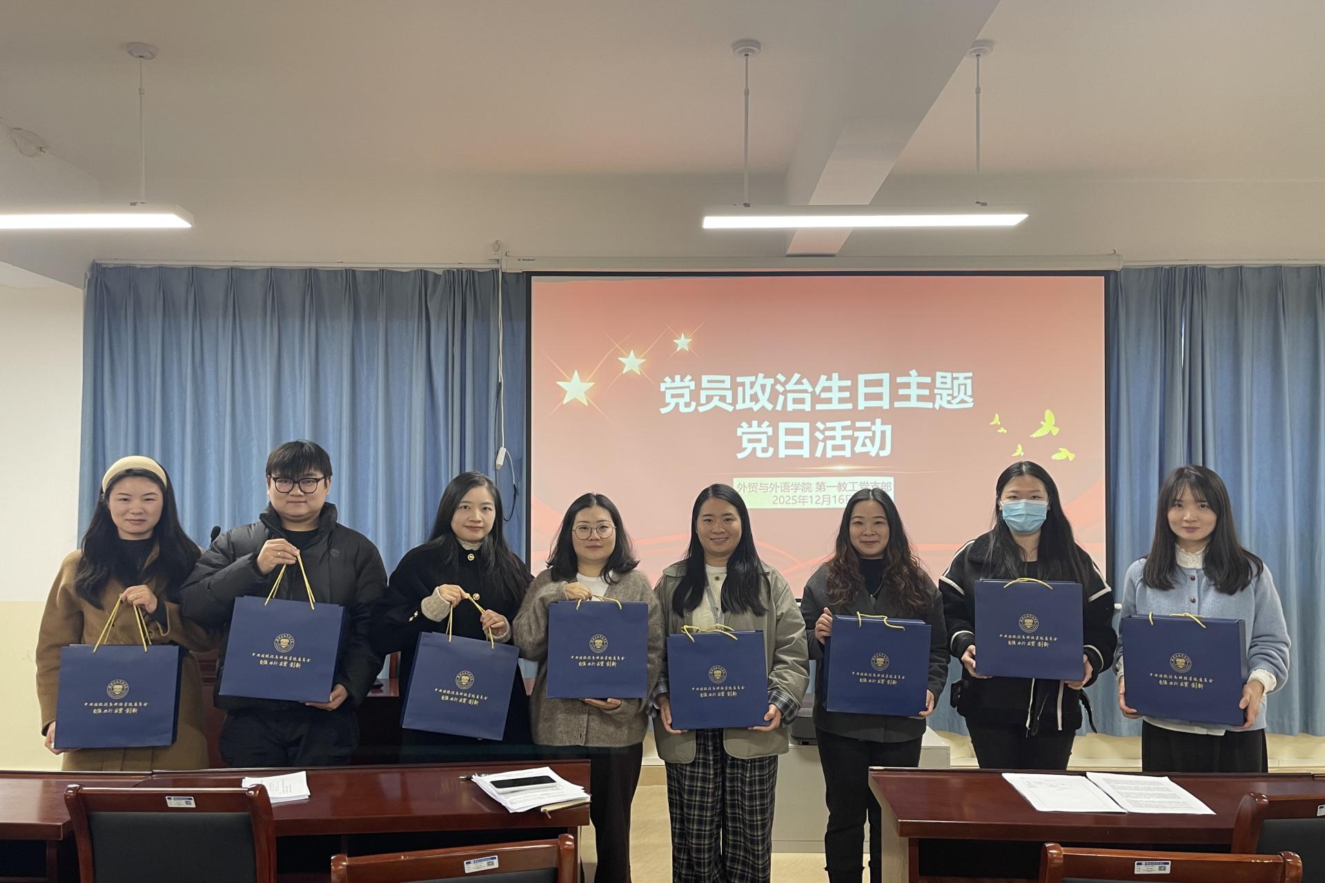 12月16日,为进一步强化党员的身份意识和责任意识,激发支部党员的政治热情与工作动力,外贸与外语学院第一教工党支部隆重开展党员政治生日主题党日活动。支部全体党员参加本次活动。