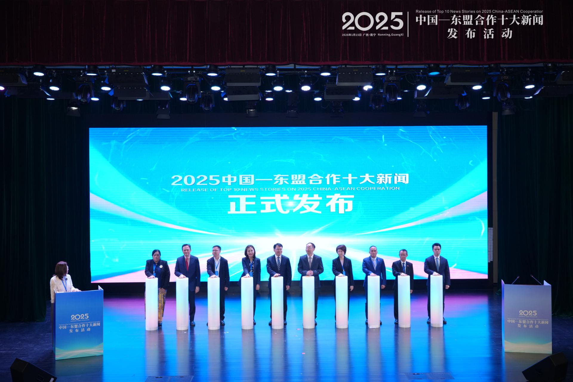 本次活动汇聚了中外多方重要嘉宾,包括中国外文局、外交学院、广西大学领导,柬埔寨、马来西亚、老挝、越南等国驻南宁总领事,以及来自中国与东盟国家有关方面的专家学者及代表300余人。活动内容涵盖领导致辞、新闻发布、专家点评及圆桌对话等环节,围绕元首外交、经贸升级、数字转型、绿色发展等议题展开深入交流。2025年评选出的十大新闻集中体现了中国-东盟关系发展的全面性与韧性,也标志着中国——东盟全面战略伙伴关系正迈向更成熟、更务实的新阶段。