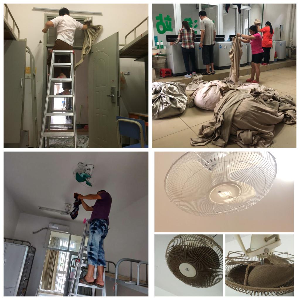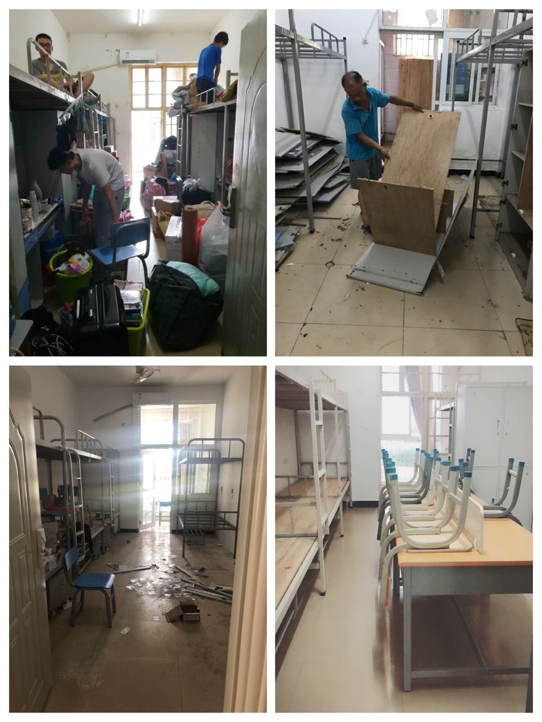 据统计,此次共改造宿舍342间,拆卸床铺525架,柜子1980个,安装床铺1146架,柜子684个,桌子684张,监督安装空调87台,清洗窗帘660副、门窗529组,风扇1058台,在施工工序结束后,公寓安排员工加班加点进入后续的保洁阶段,共完成449间宿舍的全面保洁工作,确保了搬迁计划、改造计划、新生入住计划的顺利实施。
