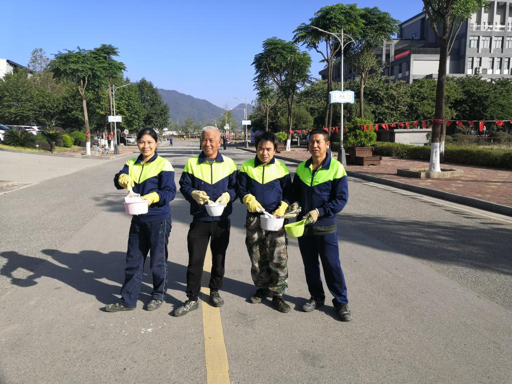 为保证涂白工作质量,绿化师傅们精心对涂白剂进行搅拌、配比,并统一涂白高度、涂层厚度均匀,达到美观一致的效果,努力做到不浪费浆料,涂白后的树木成为校园冬季一道独特亮丽的风景线。