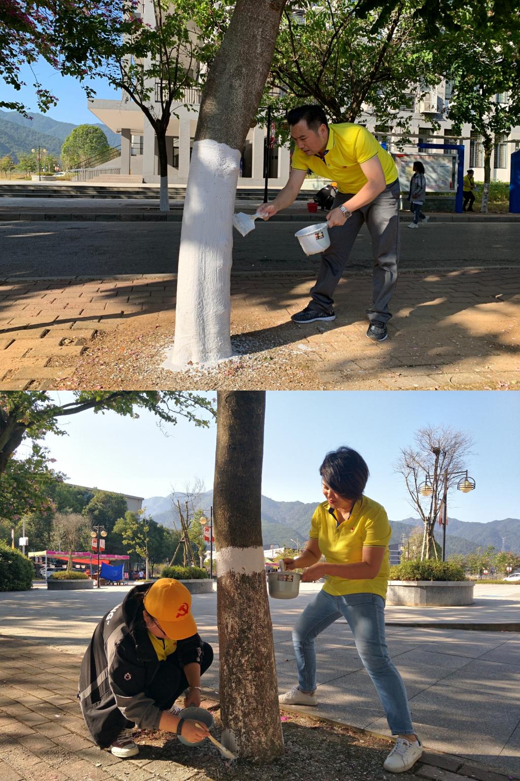在党支部书记宋海军的带领下,全体员工按照分组各自进入自己的负责区域段,大家发扬不怕脏、不怕苦、不怕累的精神,带着桶、石灰、刷子等工具,对生活区、校园主干道两旁的树木进行刮树皮、涂白。涂白过程中,同志们齐心协力、相互配合,有的同志手起泡破了,有的满手都是涂白剂,提前完成的小组迅速补位,协助未完成的小组。最后,仅用1小时就高效完成了主干道102棵树木涂白工作。