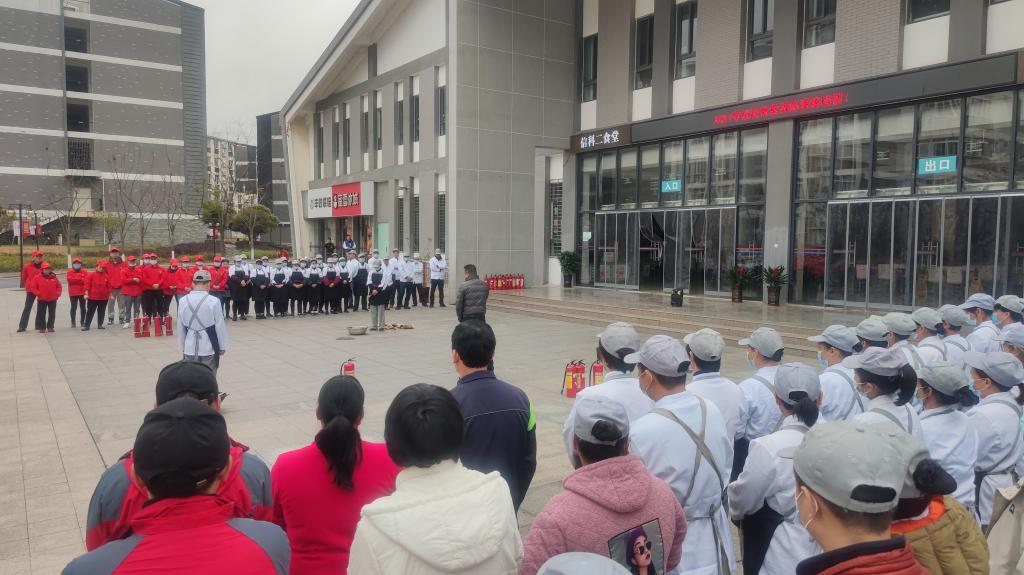 3月4日,饮食服务中心组织全体员工及公司新员工在二食堂广场开展消防演练培训,共162人参加,由二食堂班组长万金辉主讲。