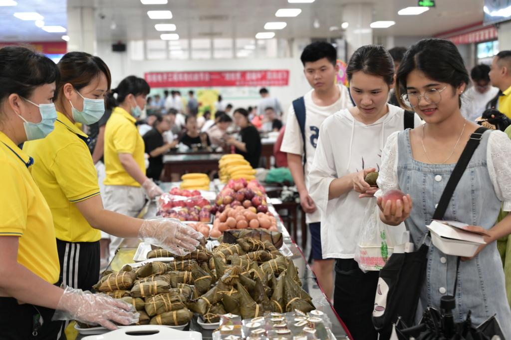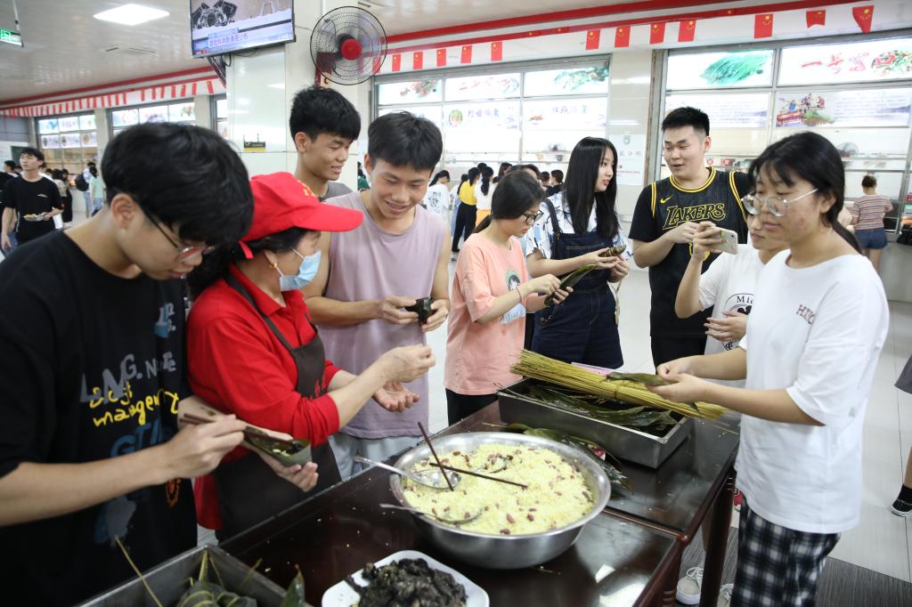 食堂工作人员说道:“今年端午节,我们跟厉行节约相结合,让同学们通过国家的传统节日感受传统文化,也更加理解厉行节约的重要性。在亲手包粽子环节,同学们能够全方面的体验、了解、学习我们的传统技艺,保证传统技艺不失传。受疫情影响,我们学校的防疫工作还是很严谨的,在端午节这个节日,有一些同学在我们的隔离室,我们也会去给他们送粽子,让他们体会到端午节的氛围,让每个同学都有家的感觉。”