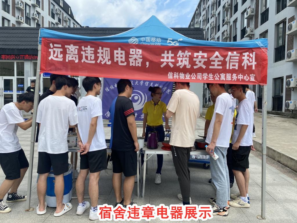 整个活动期间,公寓服务中心充分利用网站、宣传栏、LED屏标语、两微一端等媒介平台,广泛宣传“安全生产月”主题内容,加强员工安全知识教育培训,不断增强师生员工的安全防范意识;持续组织开展火灾应急疏散演习,旨在让学生及员工熟悉公寓逃生路线,以达到在发生紧急情况时,能有序、迅速的引导学生安全疏散,提高学生自救能力;联合自律委员会学生成员,分别在男、女生公寓广场设立摊点,向学生展示宿舍内查获的电饭锅、电热杯、烧水壶、热得快等多种违章电器样品,对各类别违章电器进行详细介绍说明其带来的危害,结合近年来高校学生宿舍违章电器引发的特大火灾事故案例,以此深刻警示,让在场学生引以为戒提高安全防范意识。