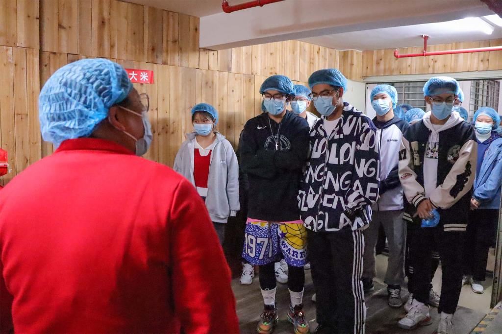 活动中,物业公司总经理助理莫丽媛老师热情接待参观的同学们,并对食堂的食材情况、卫生操作要求、加工制作环节操作规范等进行详细讲解。莫老师带领同学们参观了食堂仓库、加工间和烹饪间等场所,详细介绍了beat365食堂所批发的大米、面粉、食油、调味品等原材料,都是选择优质品牌的产品,产品质量有保障。她强调食品安全的重要性,唯有在食品源头就杜绝危害健康的情况发生,才能更好的保障师生大众“舌尖上的安全”。