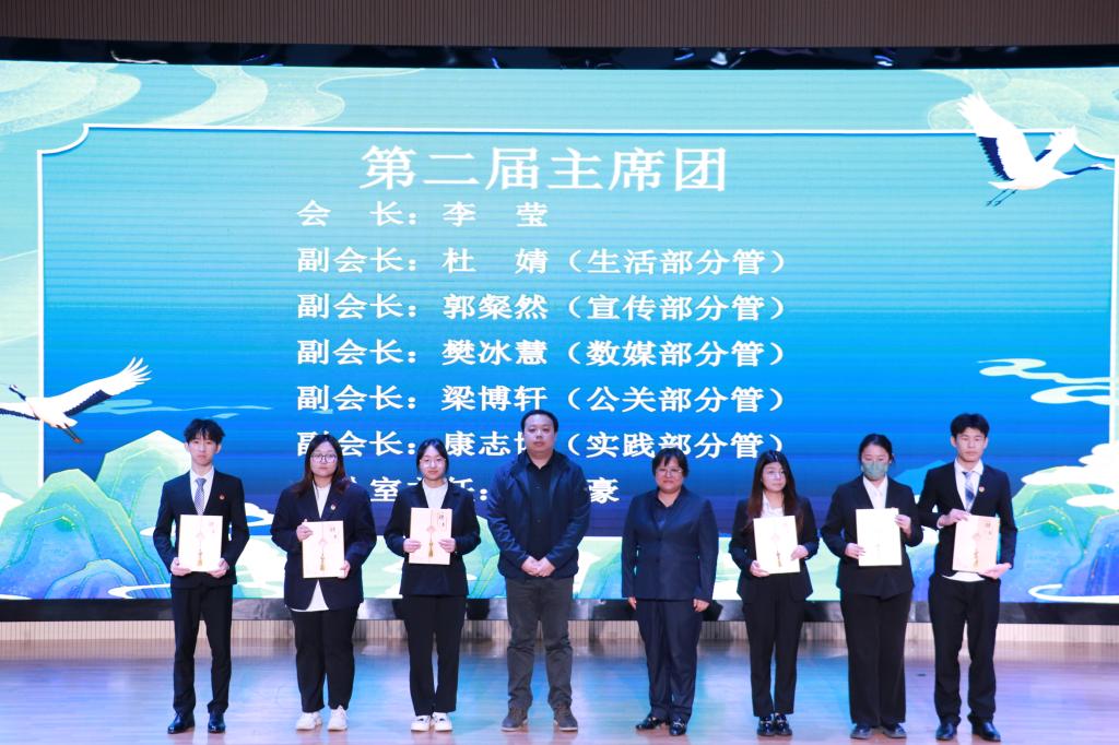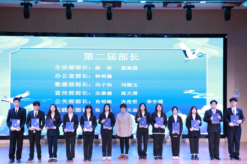 大会以青春洋溢的开场舞拉开序幕。大会公布了第二届优秀干部、优秀助理、第三届自律委员会委员名单,莫丽媛老师和文超老师、王全萍老师及迟菲菲老师分别为第二届校学生自律委员会主席团成员和各部门部长、优秀助理颁发聘书。