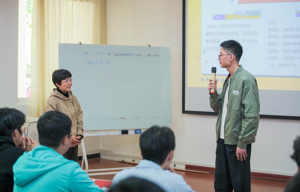 课上,陈芳老师主要从大学生心理健康建设、四种人格的测评、吐纳法和利用冥想缓解压力等方面展开,引导大家勇敢正视自我需求,积极采取有效行动,合理调整自我心态,勇于挑战自身所面临的困境与难题。