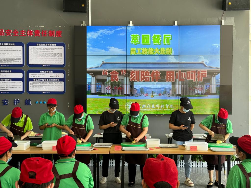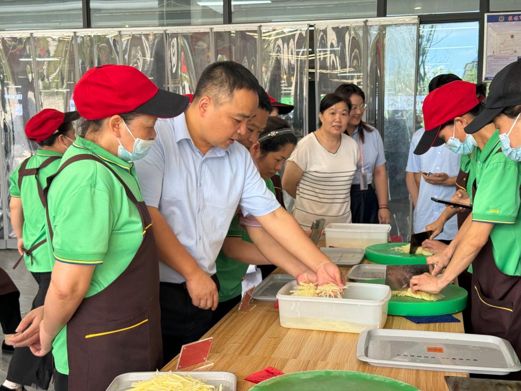 为激发食堂员工工作热情,激励员工提升自身业务技能,提高食堂菜品质量,为全校师生提供更加优质的服务,7月4日下午,食堂一楼萃园餐厅举办“‘食’刻陪伴,用心呵护”员工技能大赛,此次大赛共吸引了五十余名员工积极参与,展现了食堂员工的精湛技艺和敬业精神。
