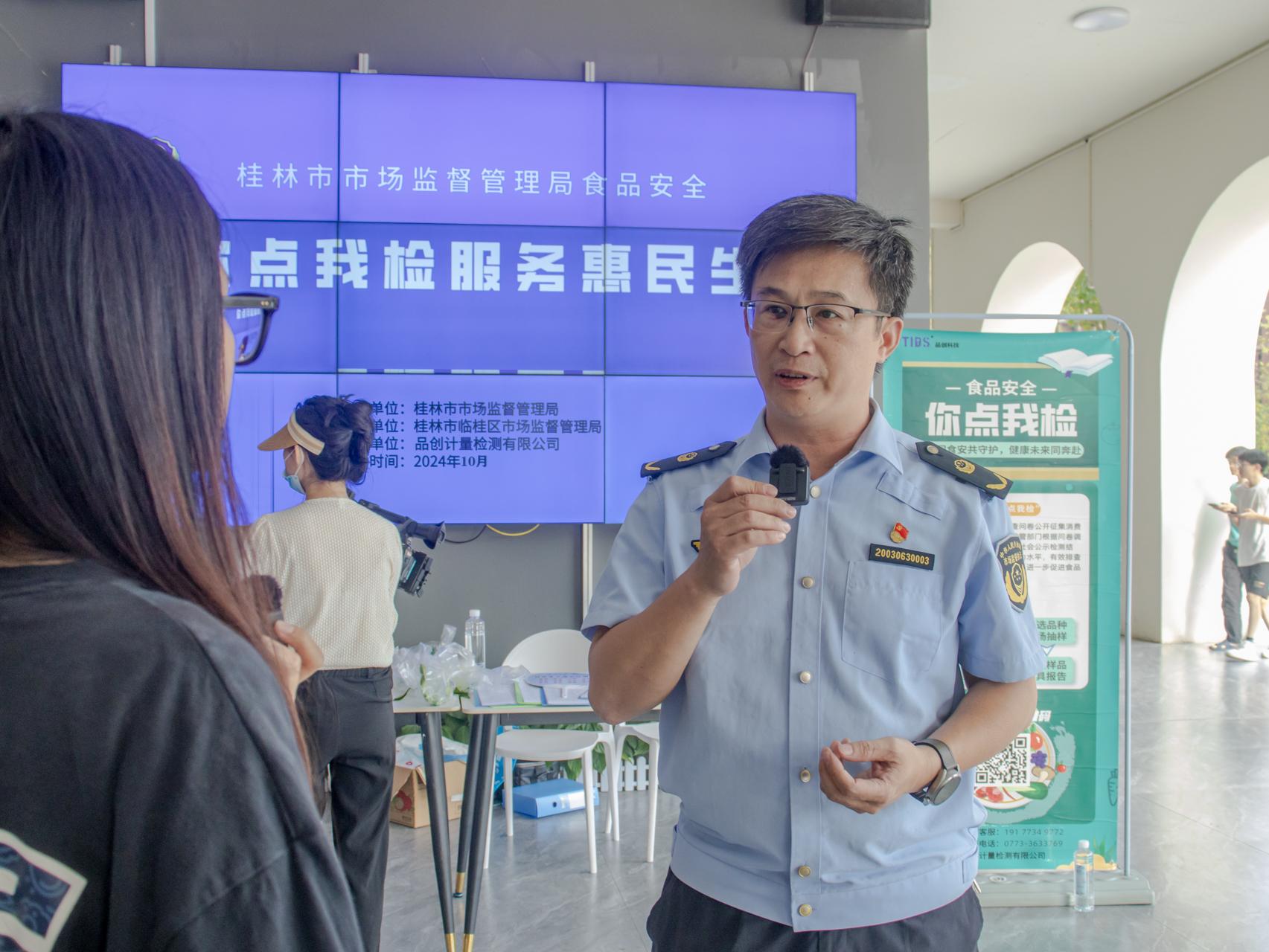 10月11日下午,在桂林市市场监督管理局的组织领导下,临桂区市场监督管理局联合检验检测公司在beat365食堂开展“你点我检 服务惠民生”活动。