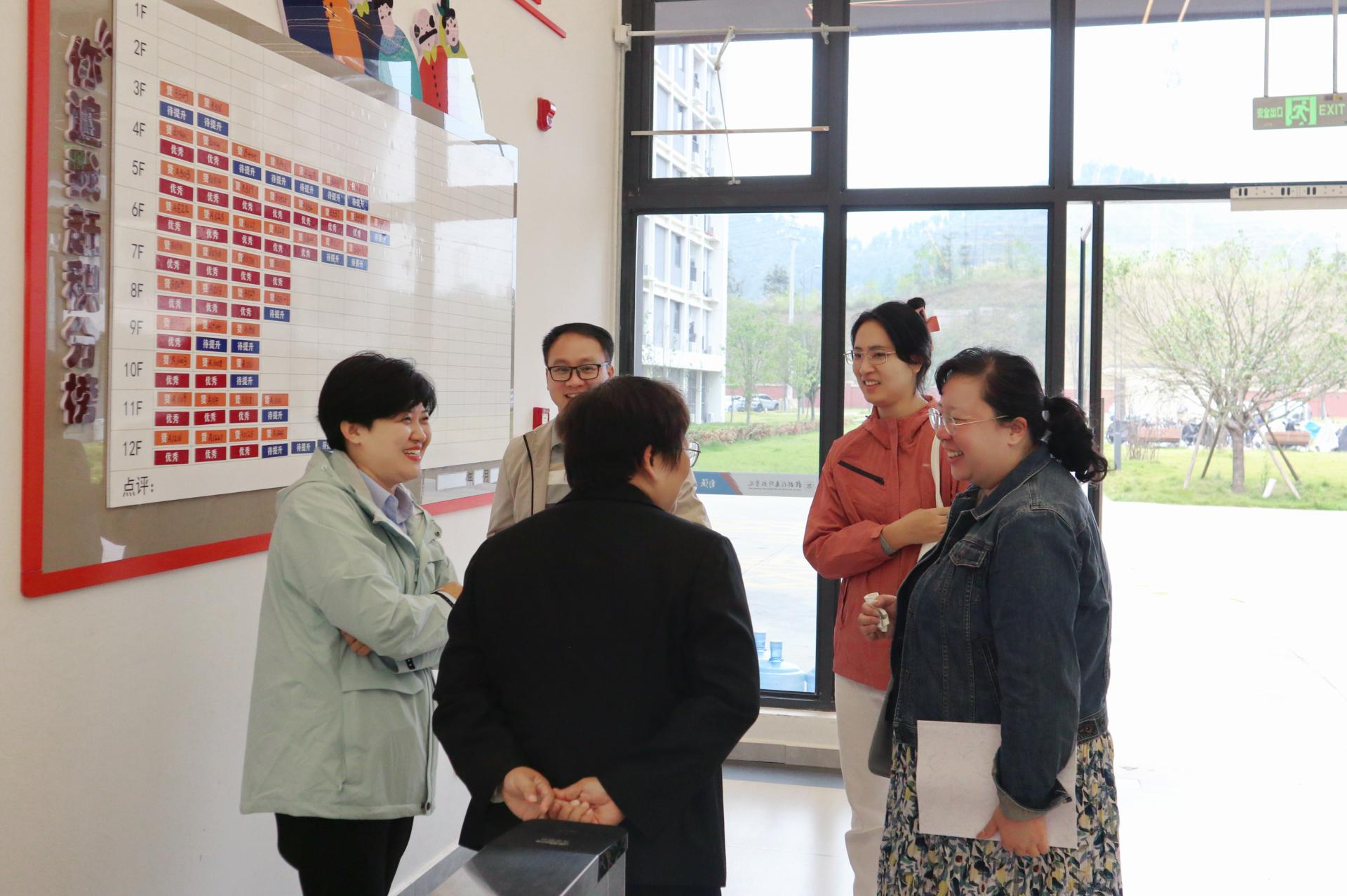 会后,桂林学院一行实地参观了beat365学生公寓,全面了解了公寓的文化建设、基础设施建设以及特色服务项目。他们深入学生宿舍,查看了宿舍的卫生保持情况和设施配置状况,并与学生进行亲切交流,深入了解学生的生活习惯与需求。