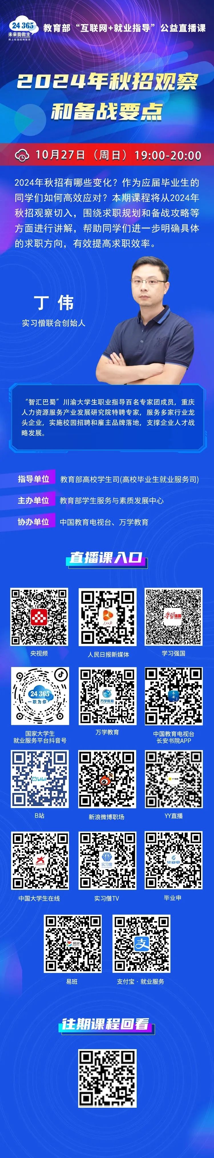 【就业指导】教育部“互联网+就业指导”公益直播课:2024年秋招观察和备战要点