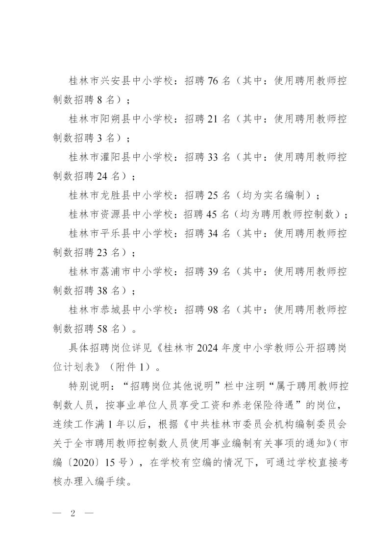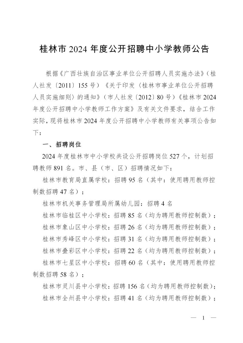 桂林市2024年度公开招聘中小学教师公告
