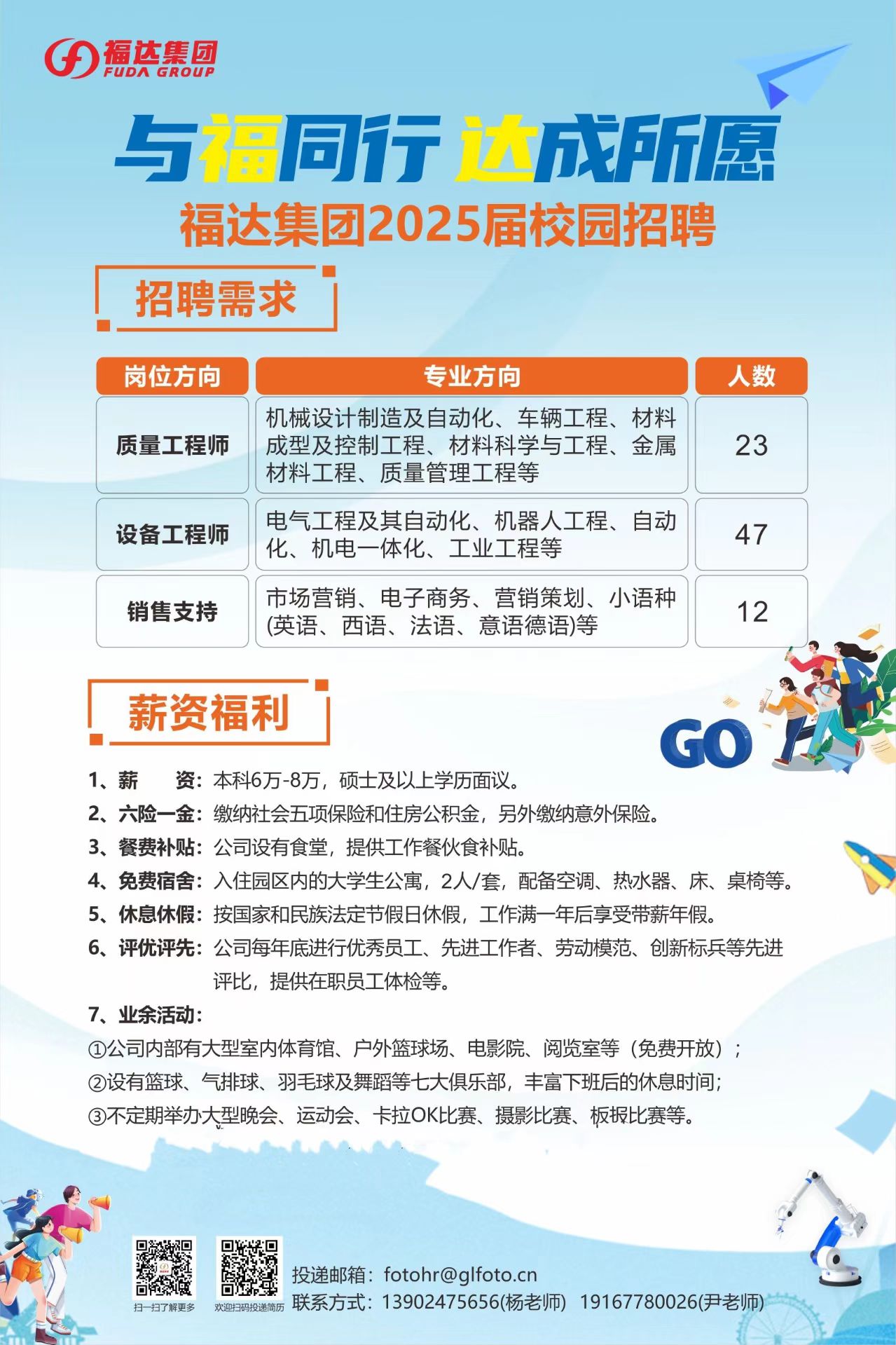 福达控股集团有限公司10月22日10:00 来校招聘(地点:一站式服务中心)
