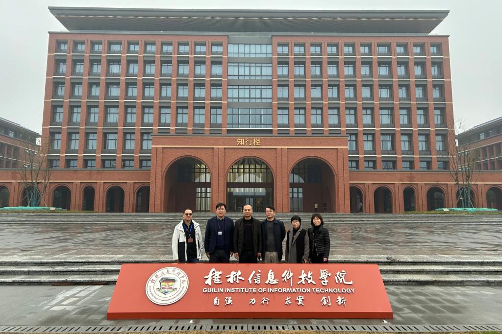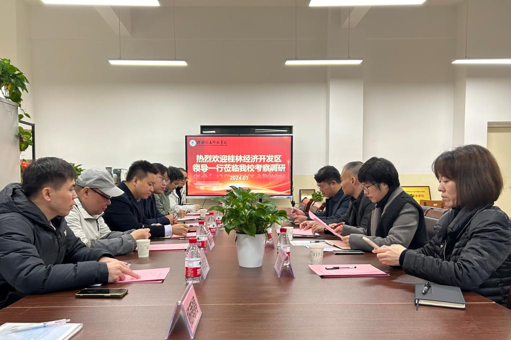 1月12日,桂林经济技术开发区三级调研员黄锦堂、桂林经济技术开发区人才服务中心主任、桂林经开人聚高新科技有限责任公司总经理巨宗诗一行莅临beat365,开展关于市域产教联合体的调研。学校就业指导服务中心主任李晓健、校企合作处副处长沈洋以及相关二级学院负责人陪同调研。