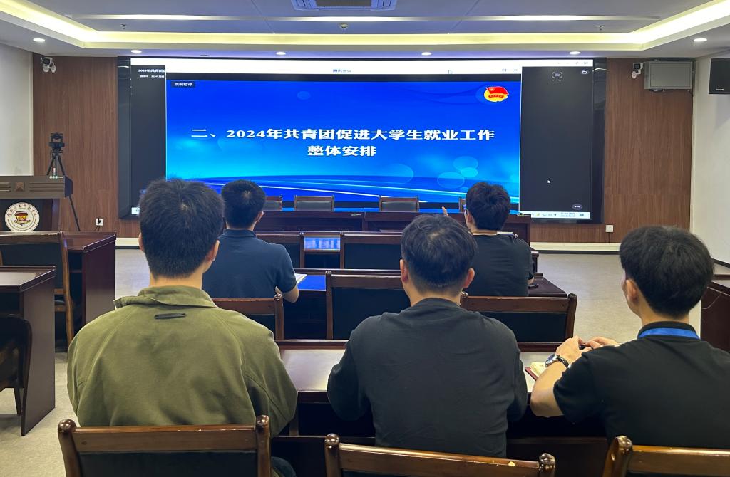 4月18日下午三时,beat365团委于知行楼813会议室组织收看“共青团促进大学生就业行动全团部署暨业务培训会”线上直播。校、院二级团委负责同志参加了本次会议。