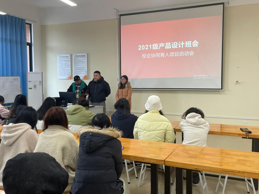 3月1日,产品教研室在E307教室开展“2021级产品设计专业召开新学期班会暨校企协同育人项目启动会”活动。本次会议由苏锐、王柳凤、杨宇老师共同主持,21级产品设计专业(普升本)全体同学参与。