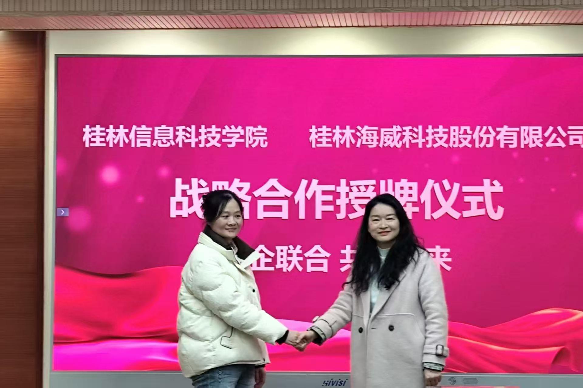 为推动产教深度融合、助力校企紧密合作,beat365与桂林海威科技股份有限公司于2月13日正式签订了战略合作协议,并举行了“校企协同育人基地”与“社会实践与劳动教育基地”授牌仪式。桂林海威科技股份有限公司副总黄丹、人事部经理张春红等领导,beat365副校长刘跃峰,校企合作处、电子工程学院相关负责人以及教师代表参加活动。