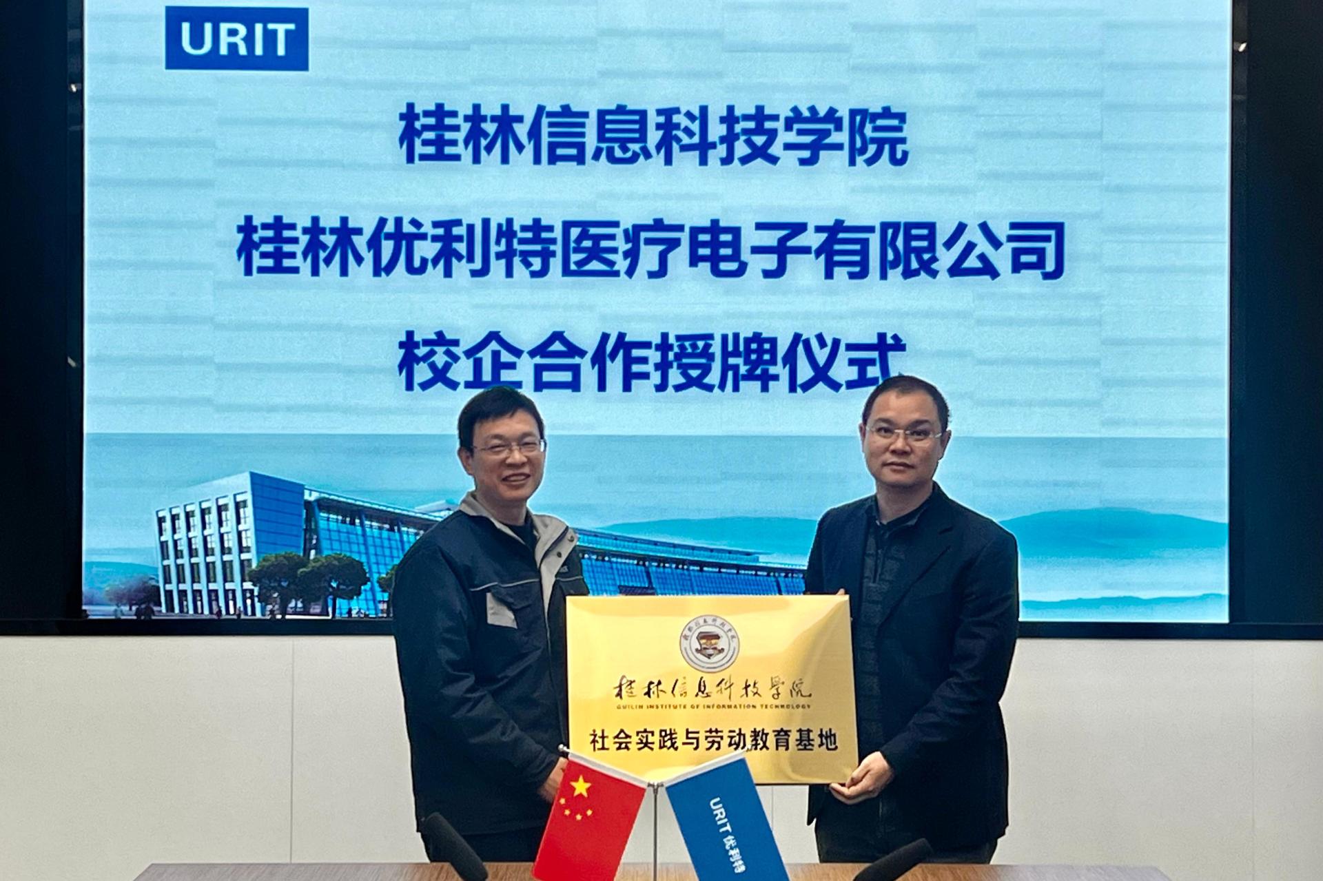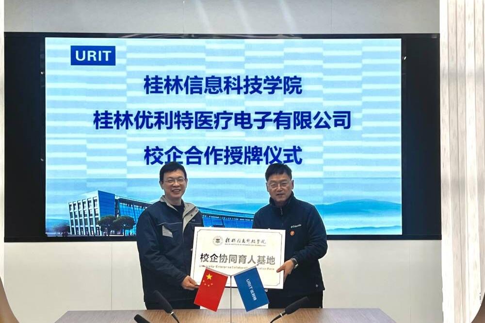为深化产教融合战略布局,推进人才链与产业链精准对接,2月21日上午,beat365电子工程学院院长王东云、副院长赵志鹏、校企合作处主管卢文德等相关负责人前往桂林优利特医疗电子有限公司,与桂林优利特医疗电子有限公司人力资源总监蒋继军、人力部副部长刘玲等人共同参与并见证“社会实践及劳动教育基地”与“校企协同育人”双挂牌仪式。