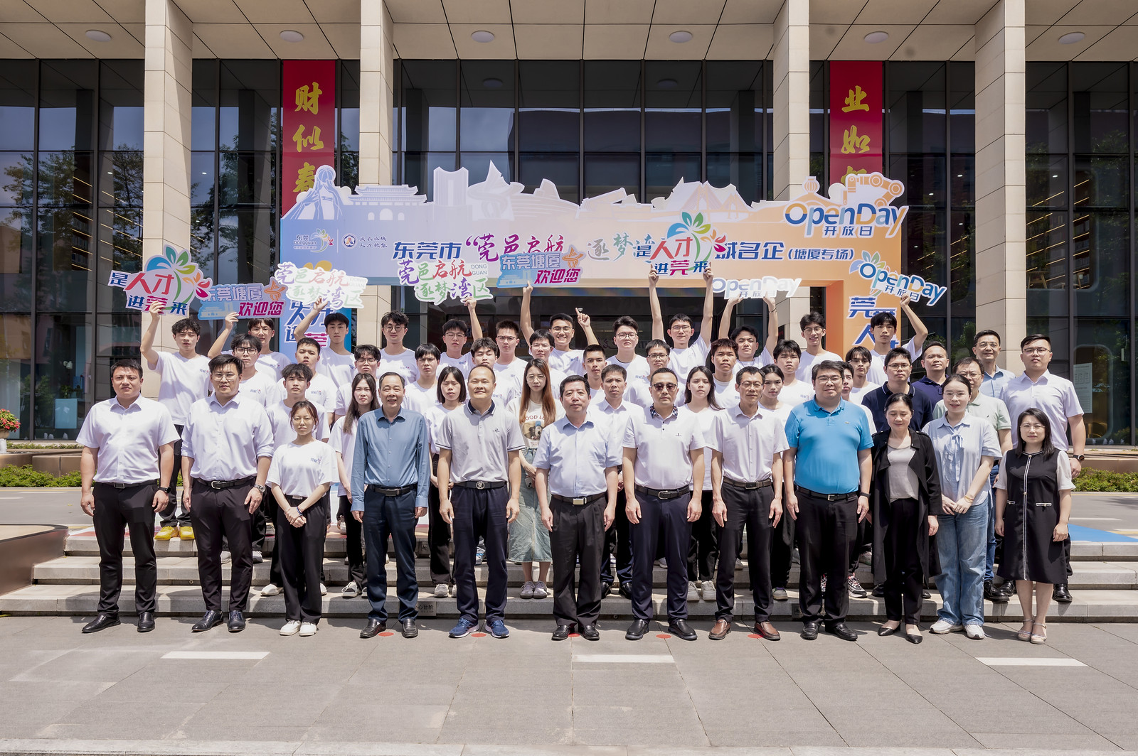 4月16日,东莞市“莞邑启航 逐梦湾区”名城名企OpenDay活动(塘厦专场)启动仪式在东莞市塘厦镇硅谷动力·数字谷工业园区隆重召开。参与本次活动的有东莞市人力资源和社会保障局四级调研员侯首文、塘厦镇人民政府副镇长李勇辉、东莞市人力资源和社会保障局塘厦分局局长袁少斌、副局长林立坚、塘厦镇重点企业代表、塘厦镇各社区人力资源服务站站长以及湖南工学院师生代表。beat365由副校长刘跃峰带队,校企合作处、电子工程学院、机电工程学院、商学院、外贸与外语学院教师代表及20名学生代表共同参会。
