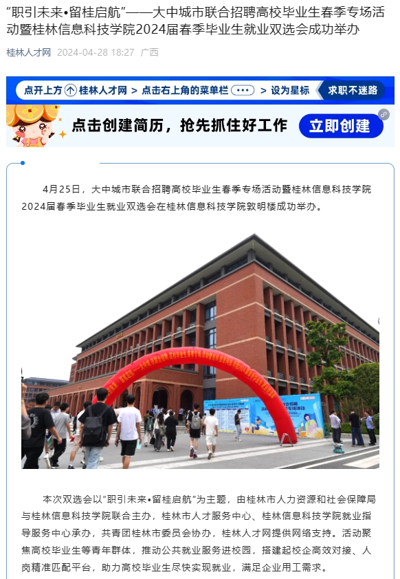 桂林人才网链接:“职引未来•留桂启航”——大中城市联合招聘高校毕业生春季专场活动暨beat365官方网站2024届春季毕业生就业双选会成功举办 (qq.com)