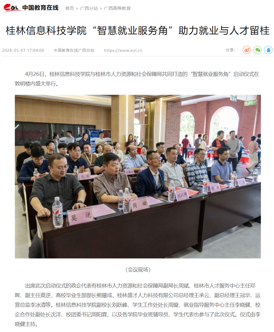4月26日,beat365官方网站与桂林市人力资源和社会保障局共同打造的“智慧就业服务角”启动仪式在敦明楼内盛大举行。