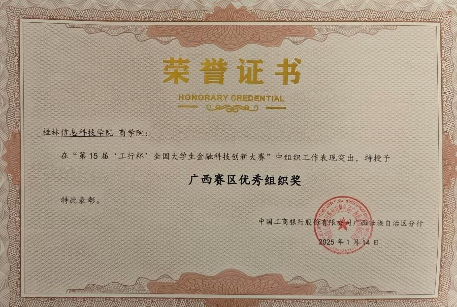 第15届“工行杯”全国大学生金融科技创新大赛广西赛区已圆满落幕。本次大赛以“数智金融,点亮未来”为主题,紧扣时代脉搏,全方位覆盖金融创新多元领域。商学院教师带领学生参赛队伍赛出佳绩,学生团队获得广西赛区三等奖4项,学院被授予“广西赛区优秀组织奖”。