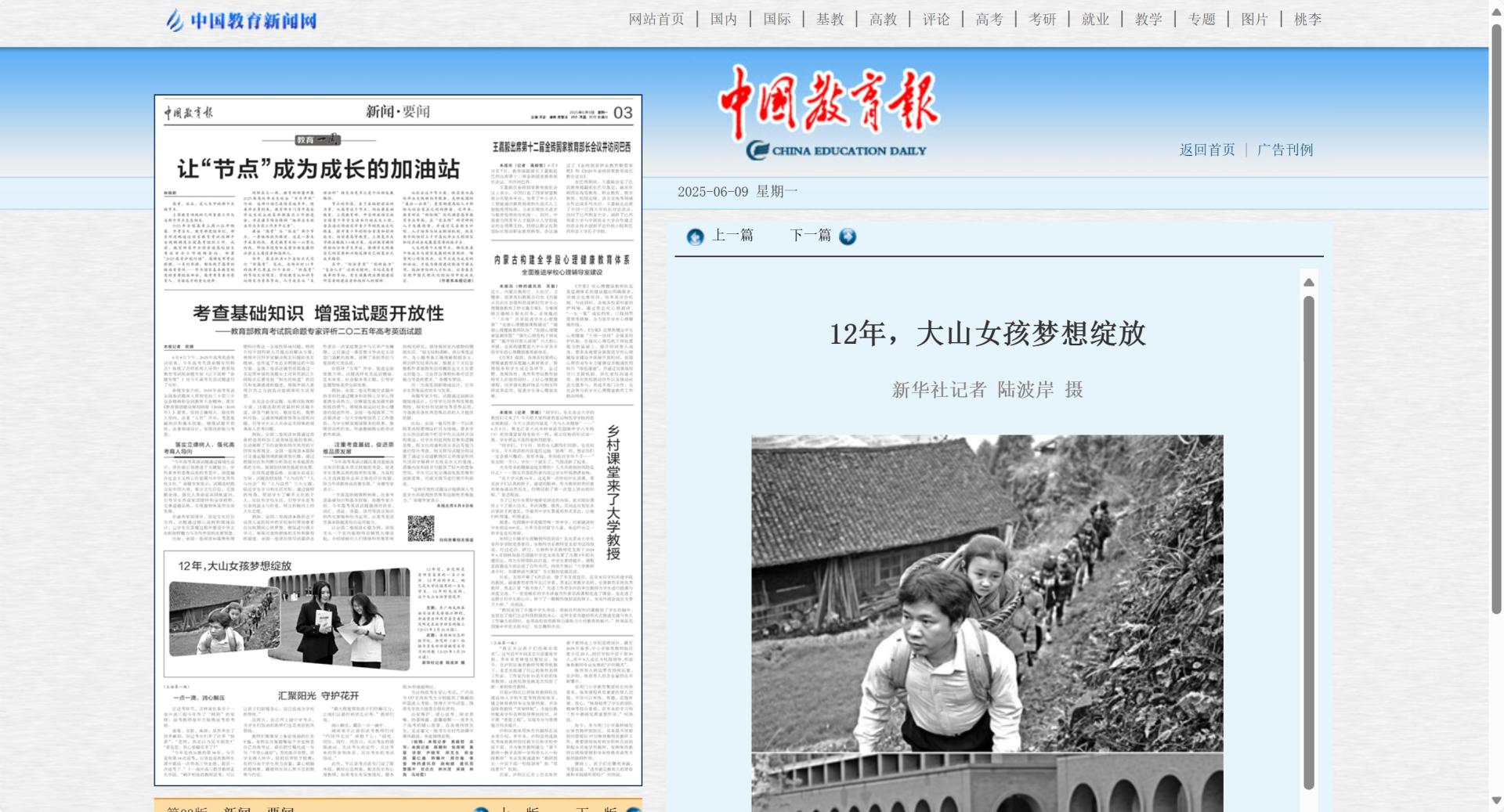 中国教育报链接:12年,大山女孩梦想绽放