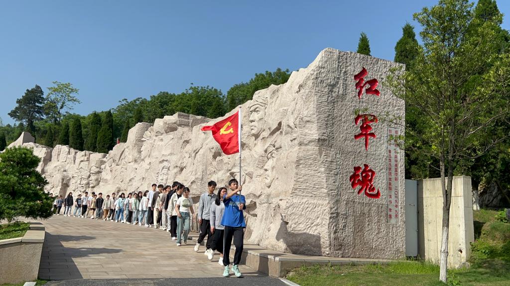 研学队伍在红军长征湘江战役纪念园馆敬献花篮,缅怀红军烈士,瞻仰《红军魂》,在界首渡口,集体朗诵《湘江为英雄歌唱》,忆悲壮湘江,在光华铺阻击战遗址,回忆可歌可泣的峥嵘岁月,珍惜美好生活的来之不易;在“重走长征路”实践活动中,同学们爬高山、下土坡,互相支持、互相鼓励,切身体会到红军不畏艰难的英勇斗争精神,在乡村振兴示范点,参观习近平总书记到访过的毛竹山村,感受脱贫攻坚和乡村振兴的建设成果。