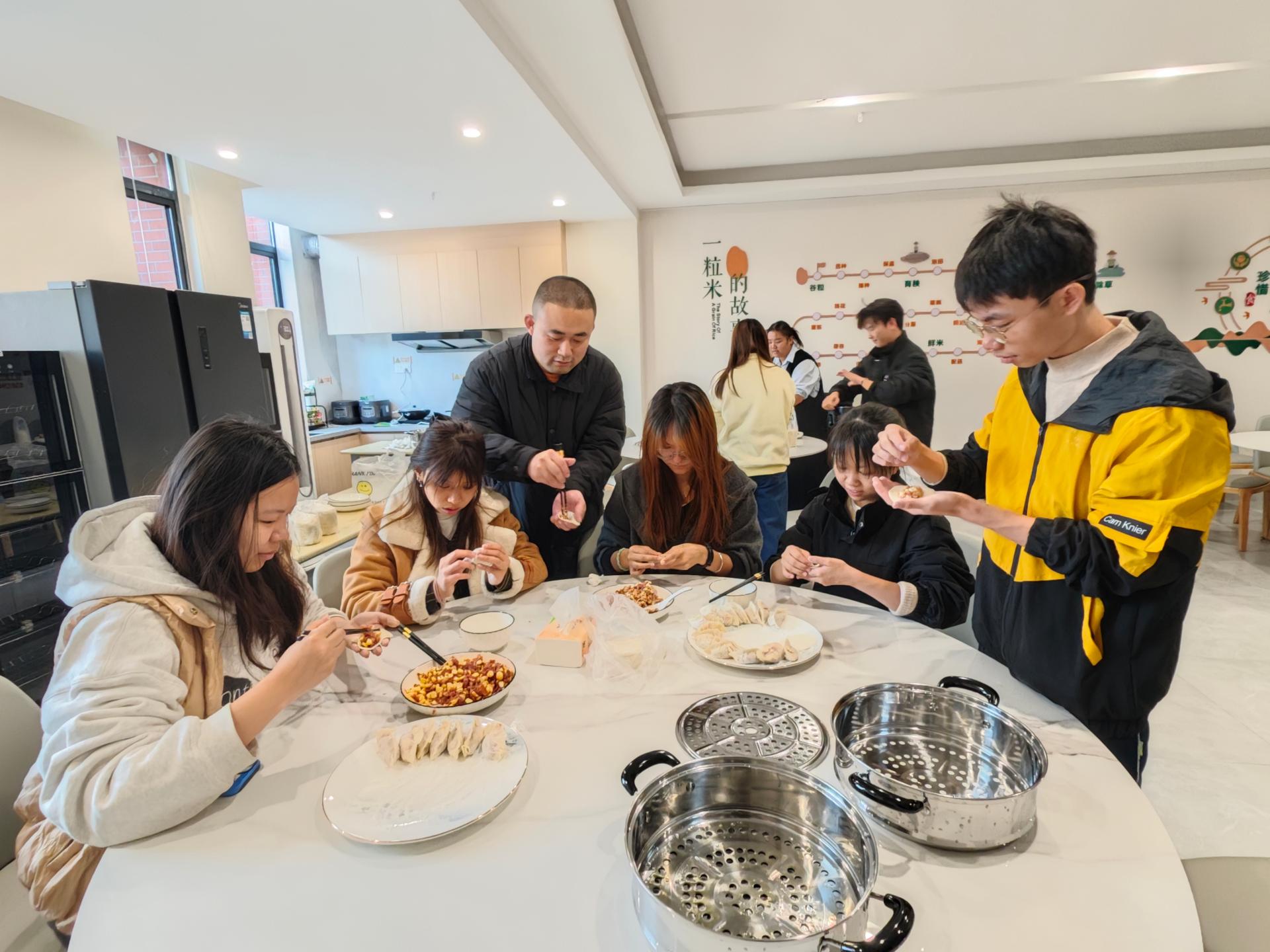12月20日上午,学生发展与服务中心组织师生在一站式学生服务中心共享厨房进行“包饺子”活动。包饺子的过程中,老师与同学们一边包着饺子,一边交流着各地冬至不同的风俗习惯,场面一番其乐融融的景象。