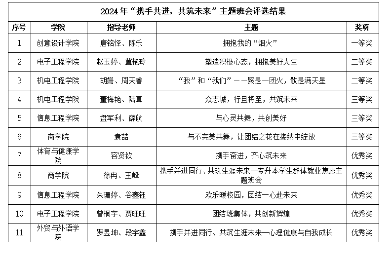 经过学校专业评审,最终评选出一、二、三等奖及优秀奖共14个优秀主题班会案例。学校将以此次评比为契机,深入推进“一站式”学生社区心理育人体系建设,促进心理健康教育常态化、浸润式发展。