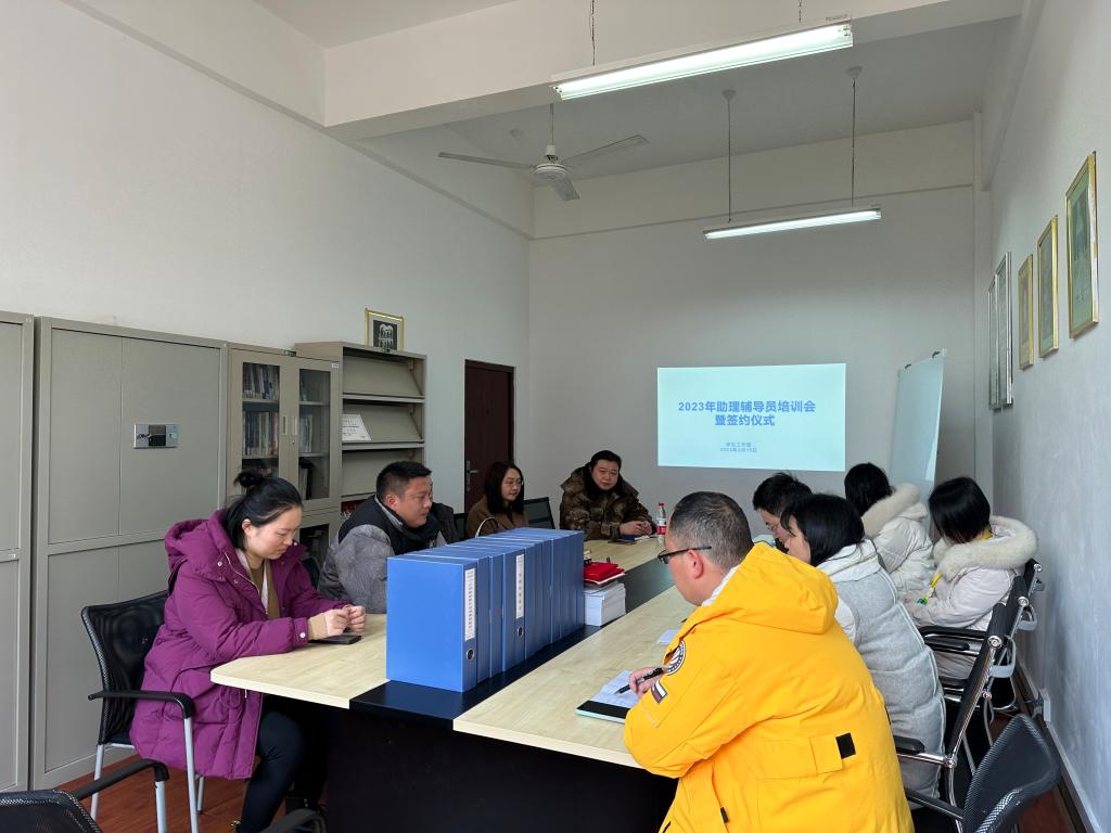 为进一步加强beat365辅导员队伍建设,保证学生教育管理工作顺利有序开展,2月16日,学生工作部在31213开展2023年助理辅导员培训会暨签约仪式。学生工作部部长周璇、副部长梁自珍、各学院党总支书记以及遴选出的8名助理辅导员参加会议,会议由学生工作部部长周璇主持。