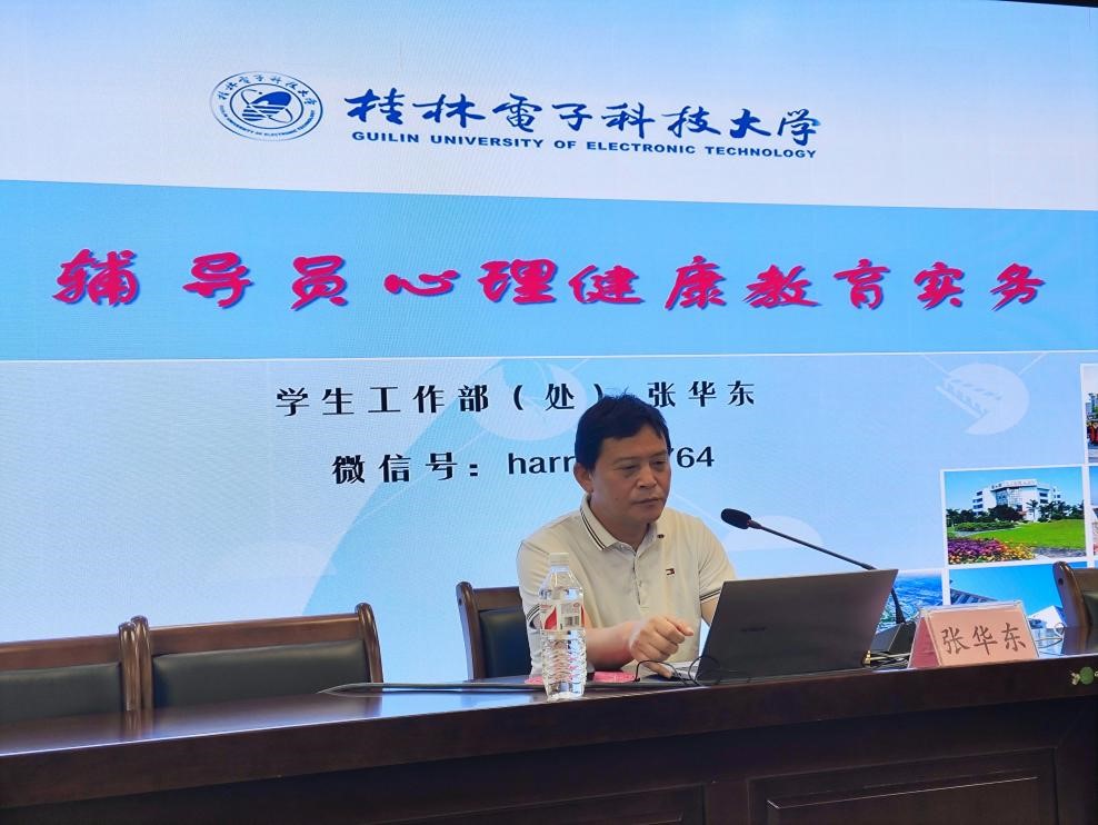 桂林电子科技大学计算机与信息安全学院、密码学院、软件学院党委书记文辉、郭庆教授、学校党委宣传部部长、融媒体中心主任张文源、桂林理工大学党委武装部部长、党委保卫工作部部长、保卫处处长张瑞、学校党委委员、党群事务部部长王南萍、桂林电子科技大学马克思主义学院系主任龙海平、桂林电子科技大学学生工作处副处长张华东分别就《安全稳定与辅导员工作》《砺学风、筑师魂——信科合格评估的主力军》《意识形态与辅导员工作》《辅导员工作成果化及科研能力提升》《党建与思想教育》《高校思想政治教育的新形势新使命新任务》《辅导员心理健康教育实务》进行了剖析;桂林理工大学艺术学院团委副书记梁璇以一线辅导员身份就《新形式下辅导员如何做好班级建设与管理》进行了交流。