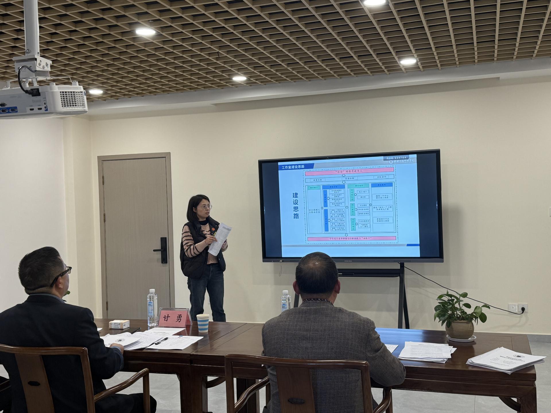 本次申报答辩共有8个辅导员工作室参与。各工作室负责人依次就建设背景、目标规划、团队协作、创新举措及预期成果等方面进行汇报。汇报紧密围绕学校人才培养与学生工作实际需求,在思想政治教育、辅导员团队建设、学生职业发展引导等多方面呈现出清晰规划与务实方法,充分展现辅导员专业素养与敬业精神。