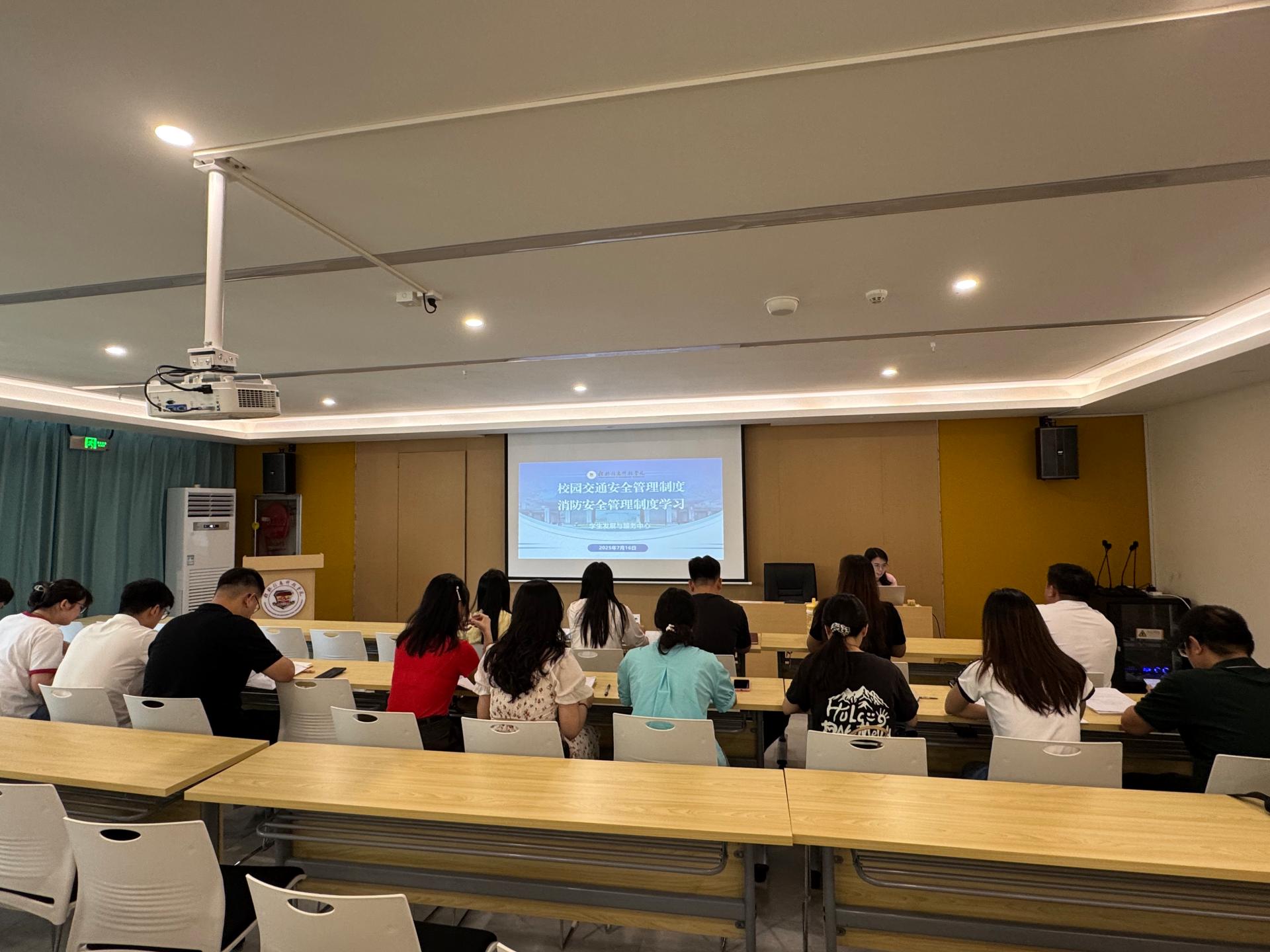 2025年7月16日,beat365官方网站学生发展与服务中心在一站式服务中心召开部门专题会议,集中学习校园交通安全与消防安全管理制度。学校纪委书记、校长助理、学生发展与服务中心主任周璇出席会议,并就校园安全管理重点工作进行部署。
