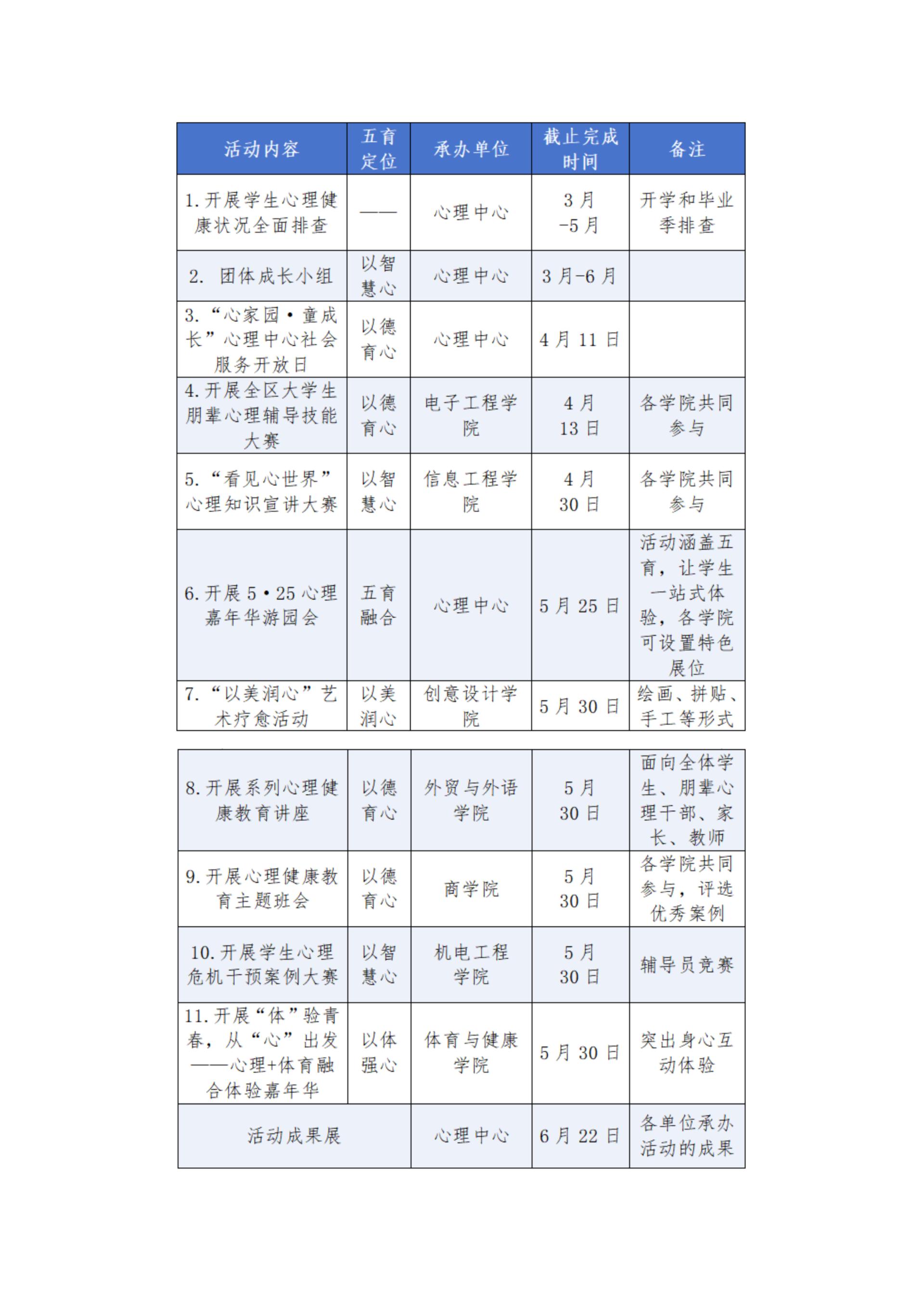 (二)高效落实,注重实效。各高校要扎实推进健康校园建设,坚持“五育”并举,把心理健康工作贯穿教育、教学、服务全过程,不断扩大学生参与覆盖面与受益面,全面提升心理育人质量。