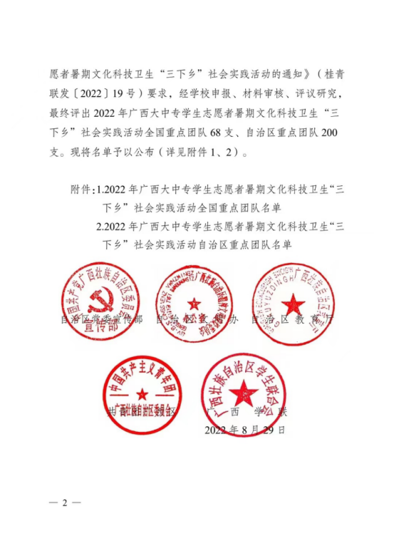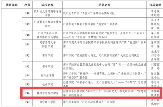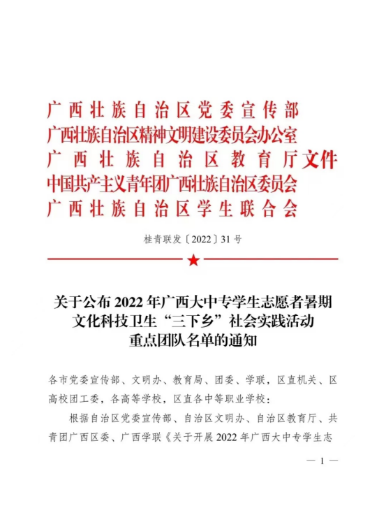 (两个团队荣获2022年广西大中专学生志愿者暑期文化科技卫生“三下乡”社会实践活动自治区重点团队)
