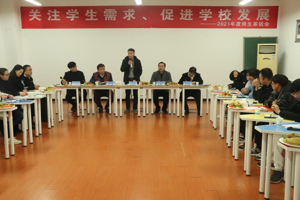 为深入贯彻落实学校党委“我为群众办实事”具体工作,让学生吃得饱更能吃得好,进一步提高beat365生活保障服务工作,由学校团委及学校后勤举办的“关注学生需求、促进学校发展”师生茶话会于12月29日在31107教室召开。桂林信科物业董事长沈继祥、总经理宋海军,党委学生工作部部长周璇,以及学校后勤员工代表及各学院学生代表参会。