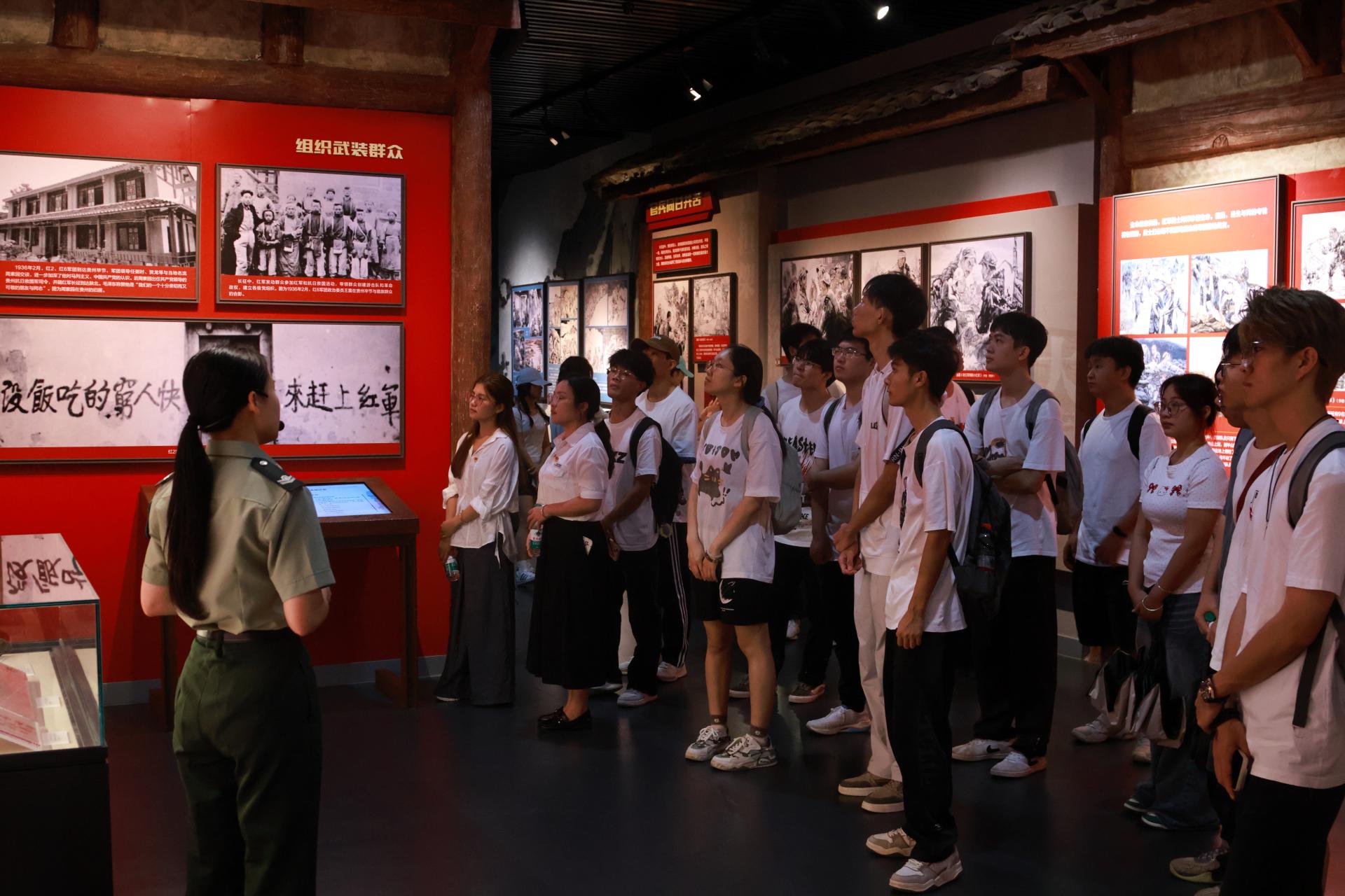 在湘江战役纪念馆中,学员们通过文物史料、场景复原和多媒体演示,深刻感悟红军战士“勇于胜利、勇于突破、勇于牺牲”的湘江战役精神。斑驳的武器、逼真的场景复原,让学员们仿佛置身于那段战火纷飞的岁月,真切体会到革命先烈的英勇无畏。